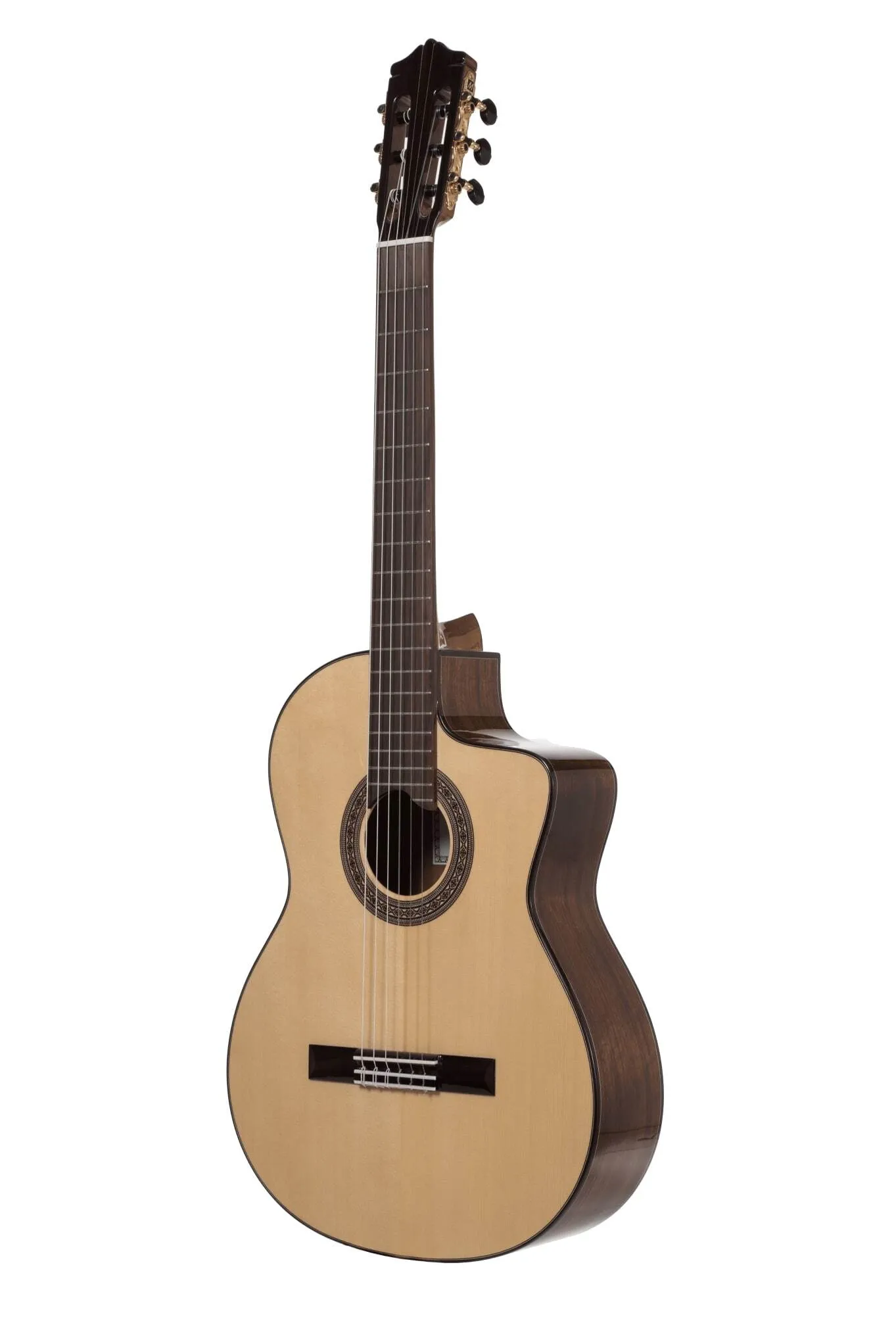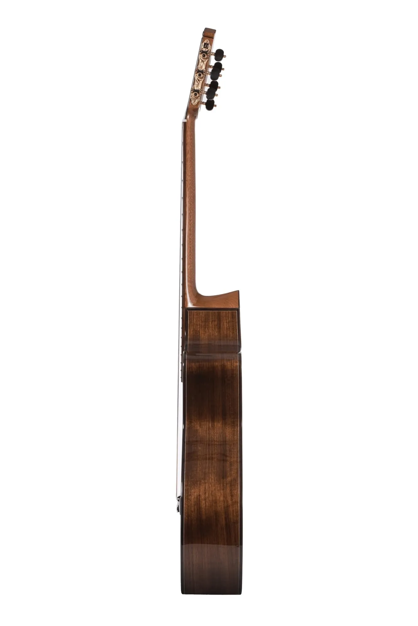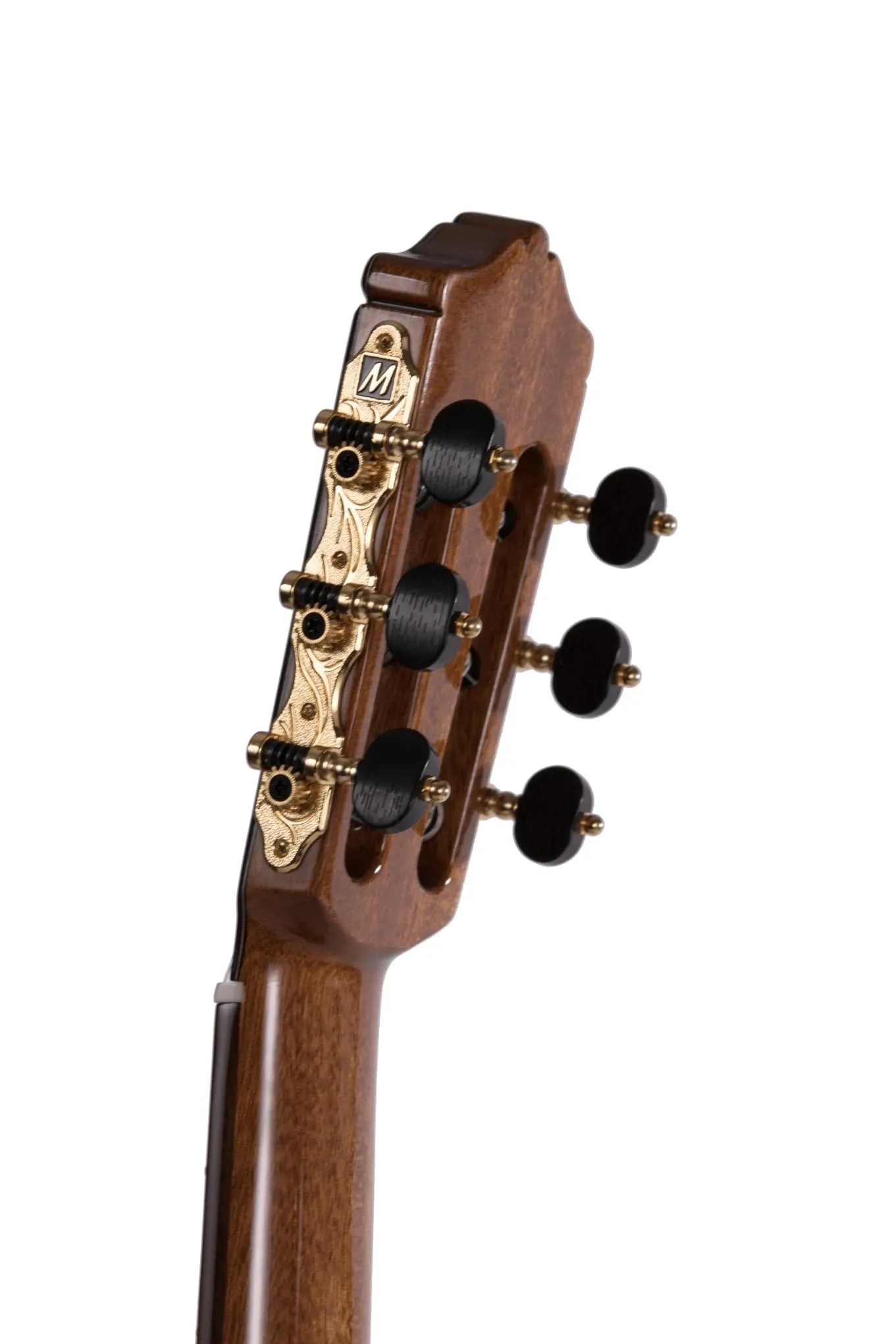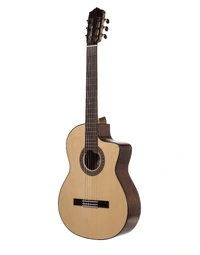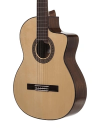Solid European spruce soundboard coupled with solid mahogany back and sides that will grow with your playing to enrich the sound of this beautiful instrument. Rich mids and warm tones are characteristic of the MCG-115. Cutaway and Fishman electronics make it a perfect performance instrument. Comes with a beautiful hardshell case.