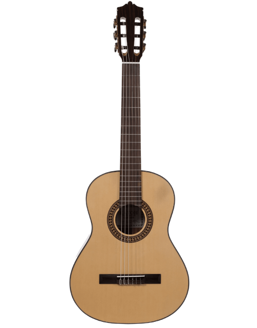 The Katoh MCG20/3 3/4 Size Classical Nylon String Guitar is well loved by teachers for its playability, its comfortable neck and reliable accurate intonation. Its gloss finish is resilient yet thin enough to allow the guitar its full voice. The MCG-20’s shorter scale length and narrower fingerboard is a perfect option for younger players. You really can’t go wrong choosing the MCG-20 as the guitar that will launch your journey as a guitarist.