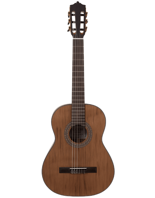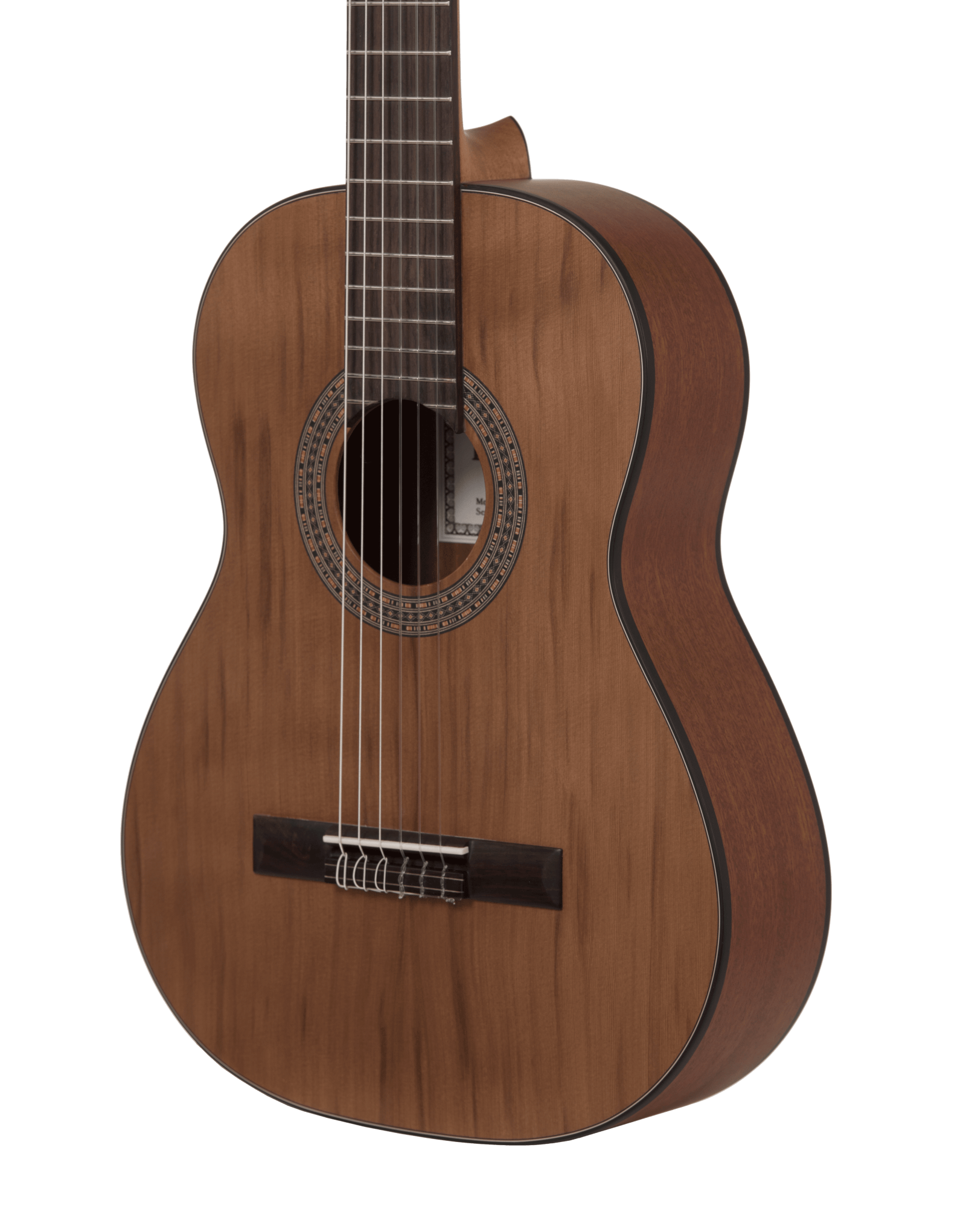 The Katoh MCG35C/3 Solid Top 3/4 Size Classical Nylon String Guitar is the next step up from the renowned MCG20 guitars, and features a solid Cedar top for warm classical tone, as well as a satin finish for smooth playability. The MCG-35C/3’s 3/4-size scale length is a perfect option for younger students (a smaller neck makes it easier for younger students to play). You really can’t go wrong choosing the MCG-35 as the guitar that will launch your journey as a guitarist.