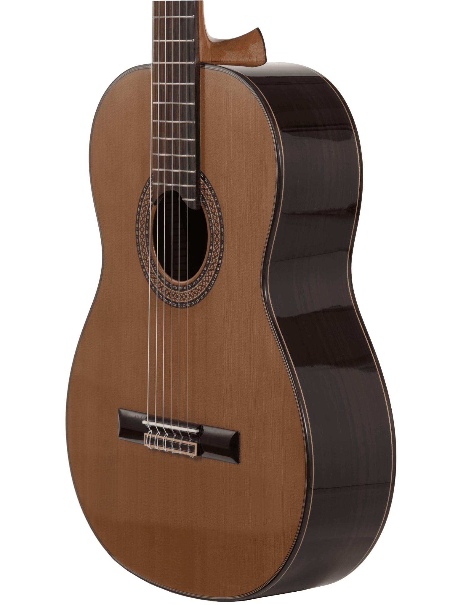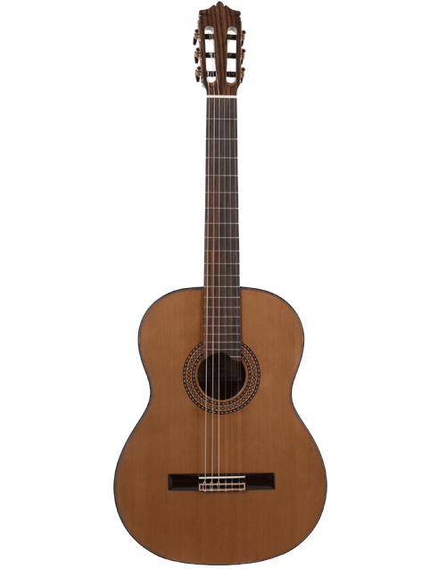 The Katoh MCG80C Solid Top Classical Nylon String Guitar features a solid Cedar top with beautiful Indian rosewood back and sides, presenting an outstanding option for the serious student or aspiring professional player. The MCG-80 ranks as one of Katoh’s most popular models; its beautiful tone and playability go hand in hand with outstanding value.