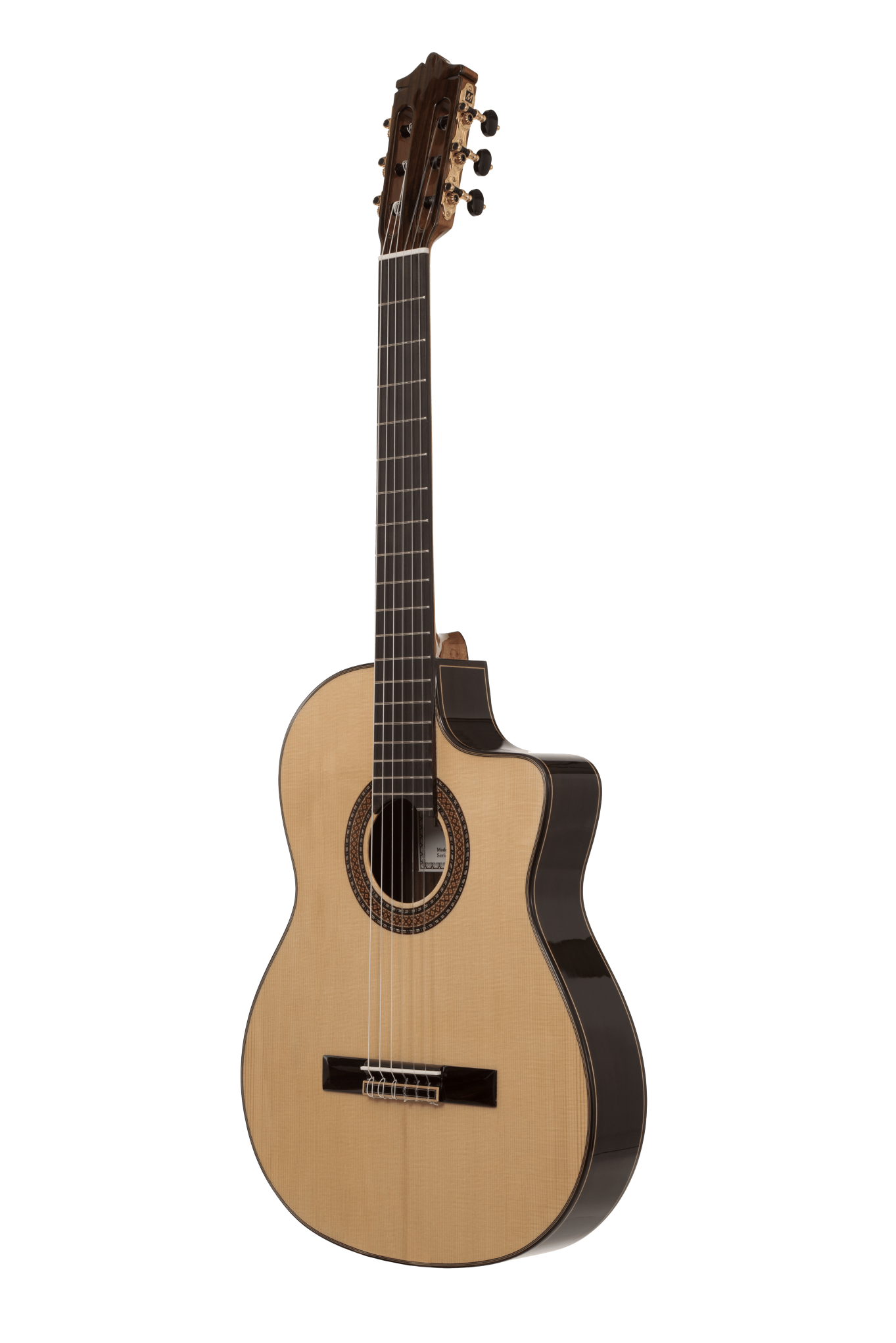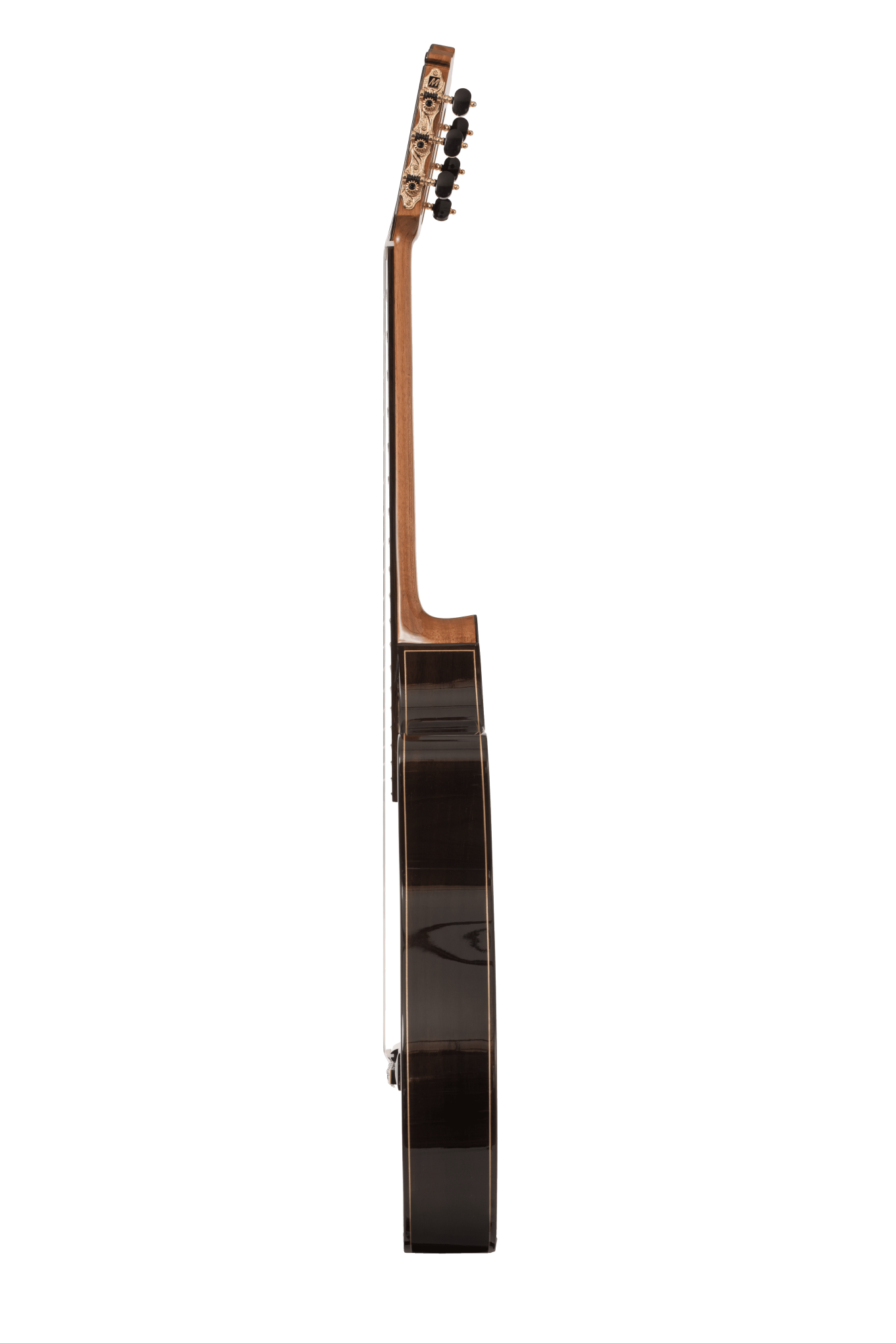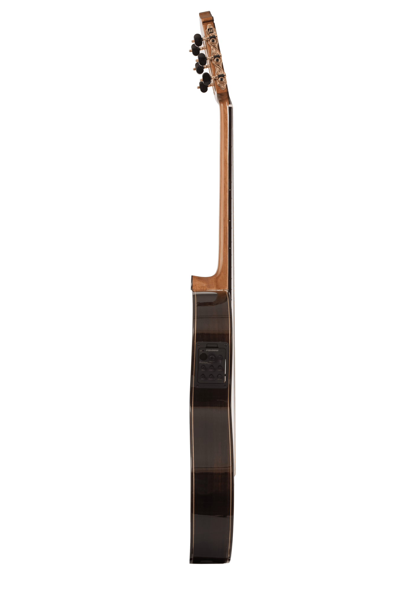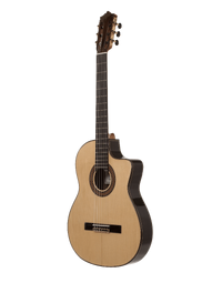 The Katoh MCG80SEQT is a beautifully crafted thinline classical guitar designed for serious students and aspiring professionals. Featuring a solid spruce top and Indian rosewood back and sides, it delivers a warm, resonant tone with excellent projection. The Spanish fan bracing enhances tonal clarity, while the thinline body provides comfortable playability, making it ideal for stage and studio use.