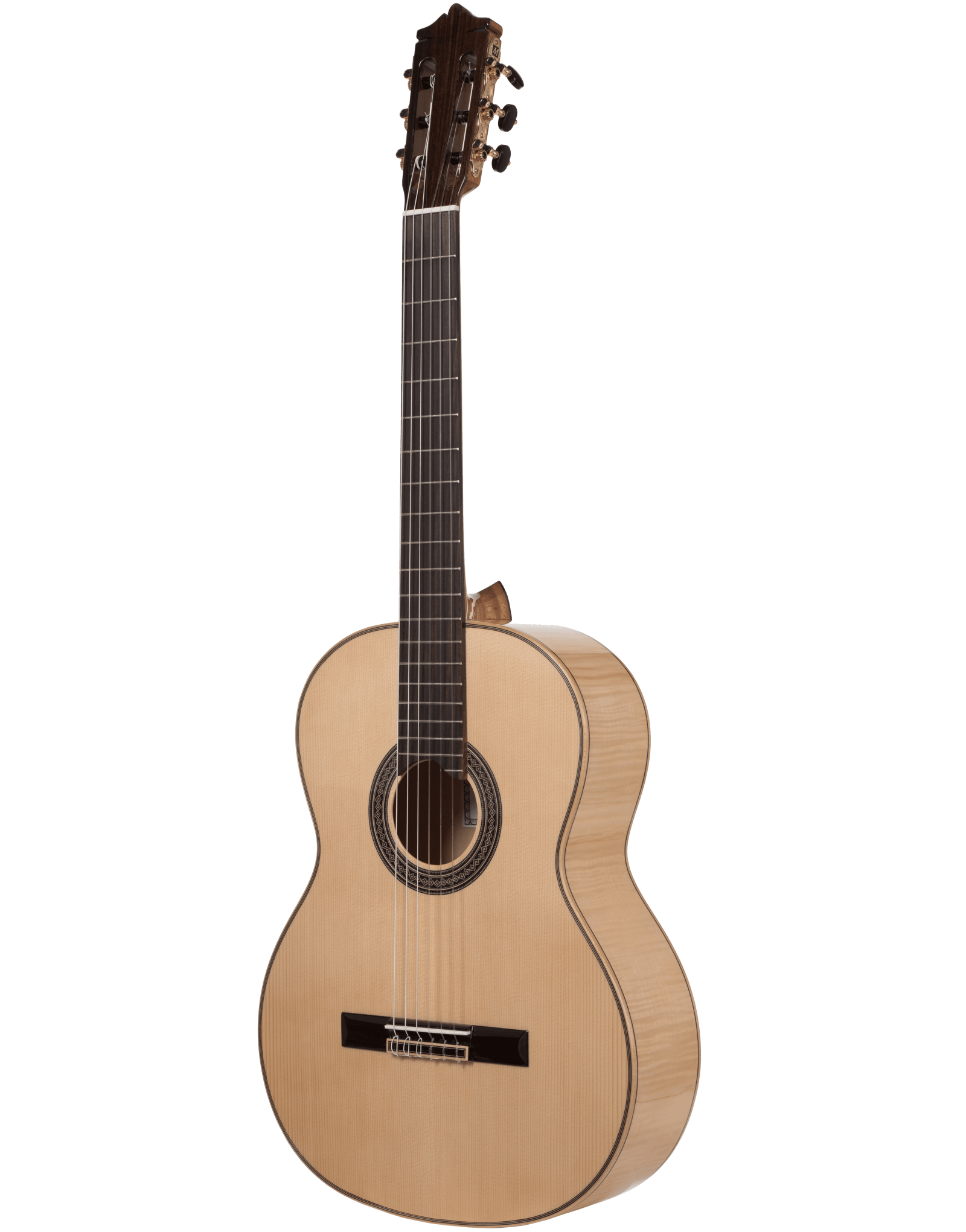 | Special Features | Spanish Fan Bracing, Spanish Neck Joint, Inlaid Wood Mosaic Rosette, Indian Rosewood Binding, Maple & Ebony Top Purfling, Maple Back & Side Purfling |