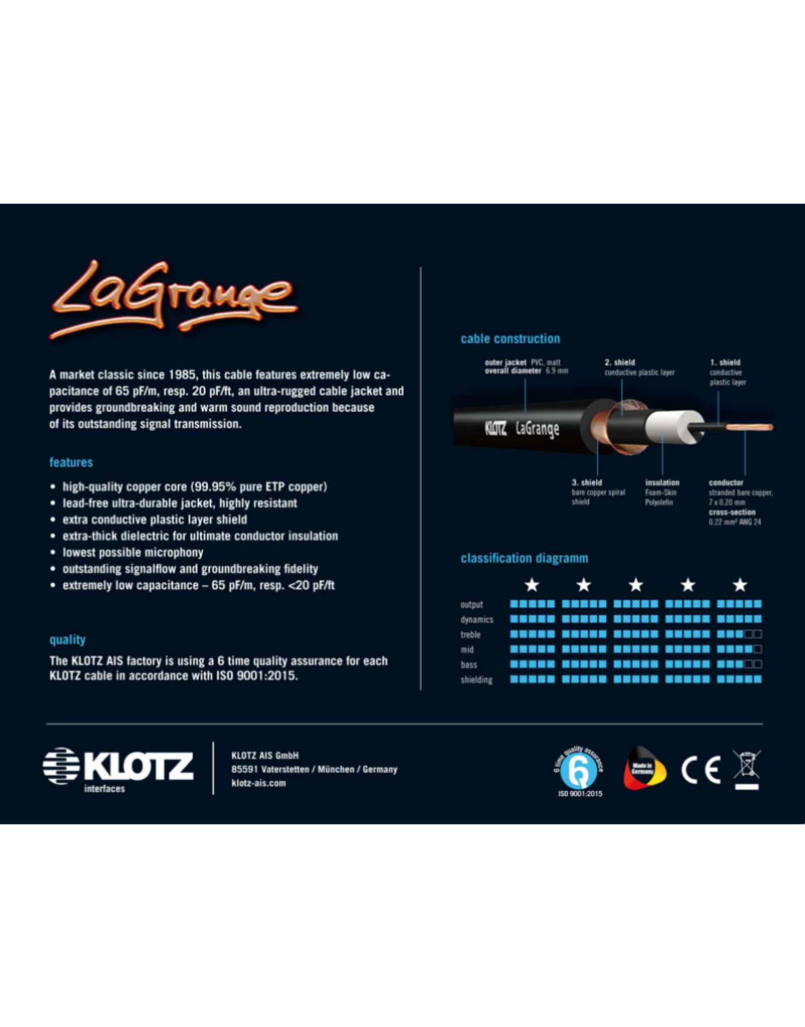 Klotz LAGPP0600 LA Grange 6m Pro Instrument Cable