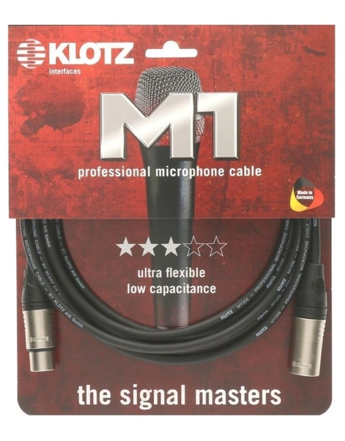 The Klotz M1K1FM M1 5M XLR-XLR Mic Cable, is a  microphone cable for ambitious musicians, and has achieved classic status as a stalwart of Klotz' range. It guarantees clear, authentic sound pleasure on stage, in the rehearsal room and in the studio. Carefully selected top-quality materials - including lead-free PVC jacket and ultra-effective copper spiral shield - ensure powerful, transparent and assertive sound. The M1’s fat twisted-core design retains its symmetry and is crushproof, reducing interference to the bare minimum. In combination with extra-low capacitance of a mere 60pF/m and our innovative XLR connectors on both ends (also available with XLR / jack connectors), they add the finishing touch for great sound.