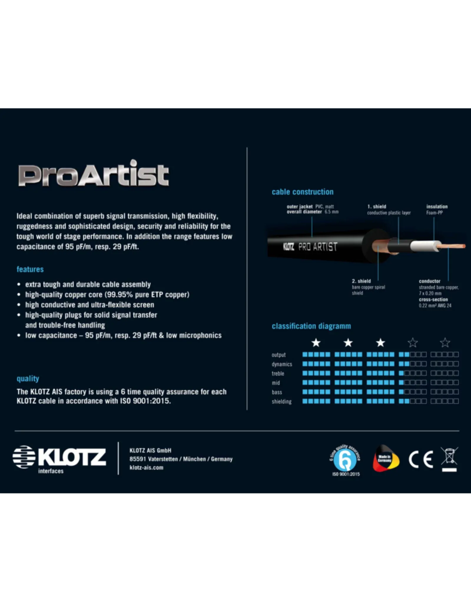 Klotz PRON060PR Pro Artist 6m Instrument Cable Straight / Right Angle