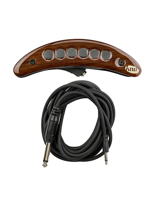 The KNA SP-1 Soundhole Pickup is a simple, effective solution for amplifying your steel-string acoustic guitar with natural tone and articulate clarity. Designed with a passive single-coil and housed in a lightweight mahogany case, the SP-1 delivers a balanced and responsive sound thanks to fast-reacting ferrite magnets. It installs quickly into the soundhole without the need for any modification and includes a 1/8" to 1/4" cable for plug-and-play convenience. At Riffs & Licks Music, we think the SP-1 is a great choice for acoustic players seeking a clean, straightforward pickup with warm, natural tone and zero fuss.