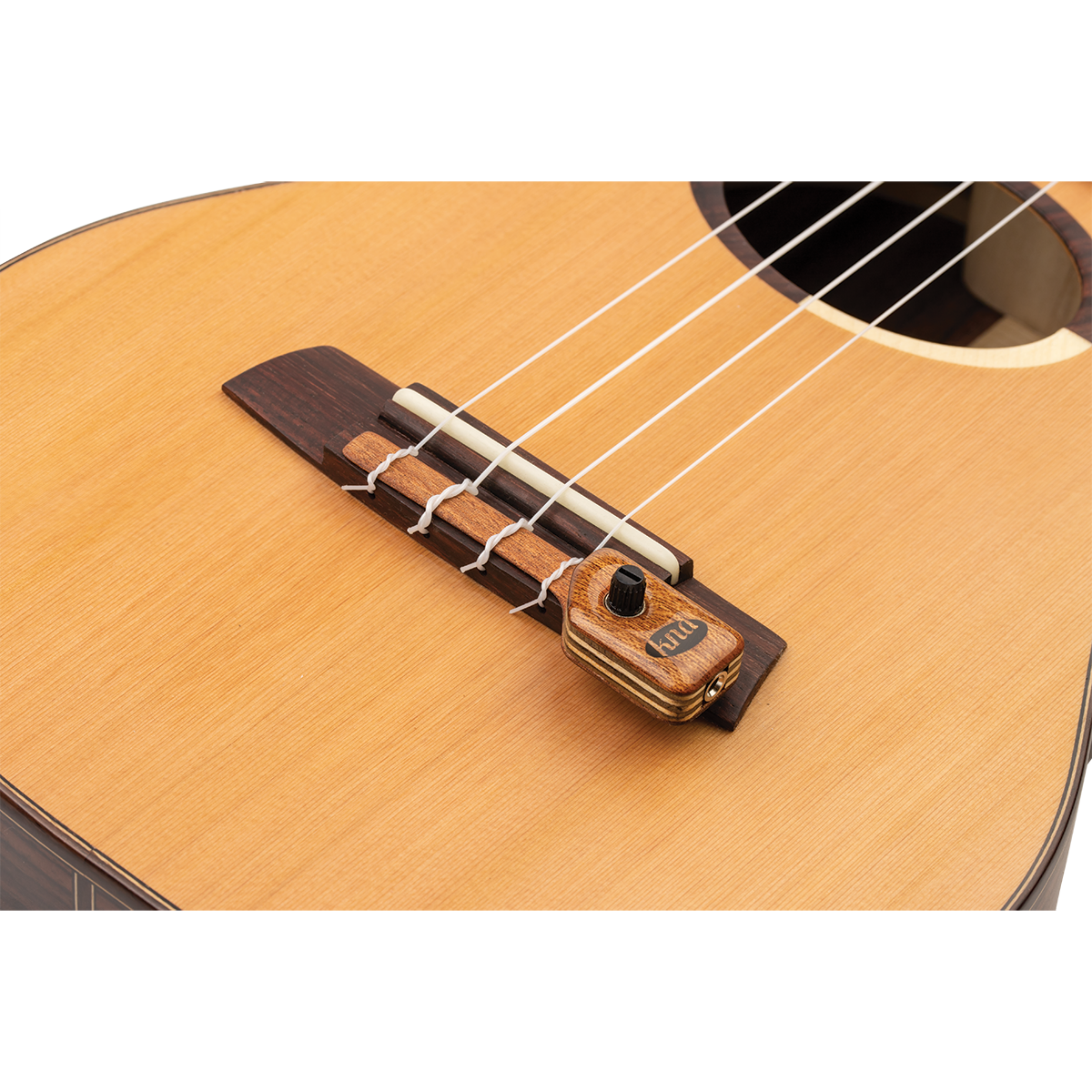 The KNA UK-2 Ukulele Pickup delivers clear, natural amplification for your uke without the need for modification. Designed to mount securely on the tie block, it’s easy to install—just slide it into place and retighten the strings. The passive piezo design captures the ukulele’s warm, resonant tone with exceptional clarity, while the elegant mahogany housing ensures lightweight durability and tonal sensitivity. With an onboard volume knob, players can easily adjust levels on stage or in the studio without external gear. Suitable for soprano, concert, tenor, and baritone ukuleles, the UK-2 includes two detachable cables for flexible setup options. Compact, reliable, and battery-free, it’s the perfect choice for versatile ukulele amplification.