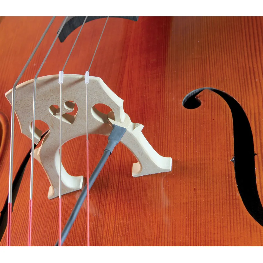 The KNA VC-1 Cello Pickup delivers clear, natural amplification while keeping your instrument completely unaltered. Its wooden piezo sensor fits neatly into the eye slot of the bridge, held in place by friction for a secure yet removable installation. The lightweight wood casing ensures excellent tonal sensitivity and preserves the cello’s acoustic warmth and resonance. A tailpiece-mounted ¼" output jack attaches with a Velcro band for convenience and stability, while additional shim discs help achieve the perfect fit. With its passive design requiring no batteries, the VC-1 provides a faithful reproduction of your cello’s tone for both live performance and recording sessions.