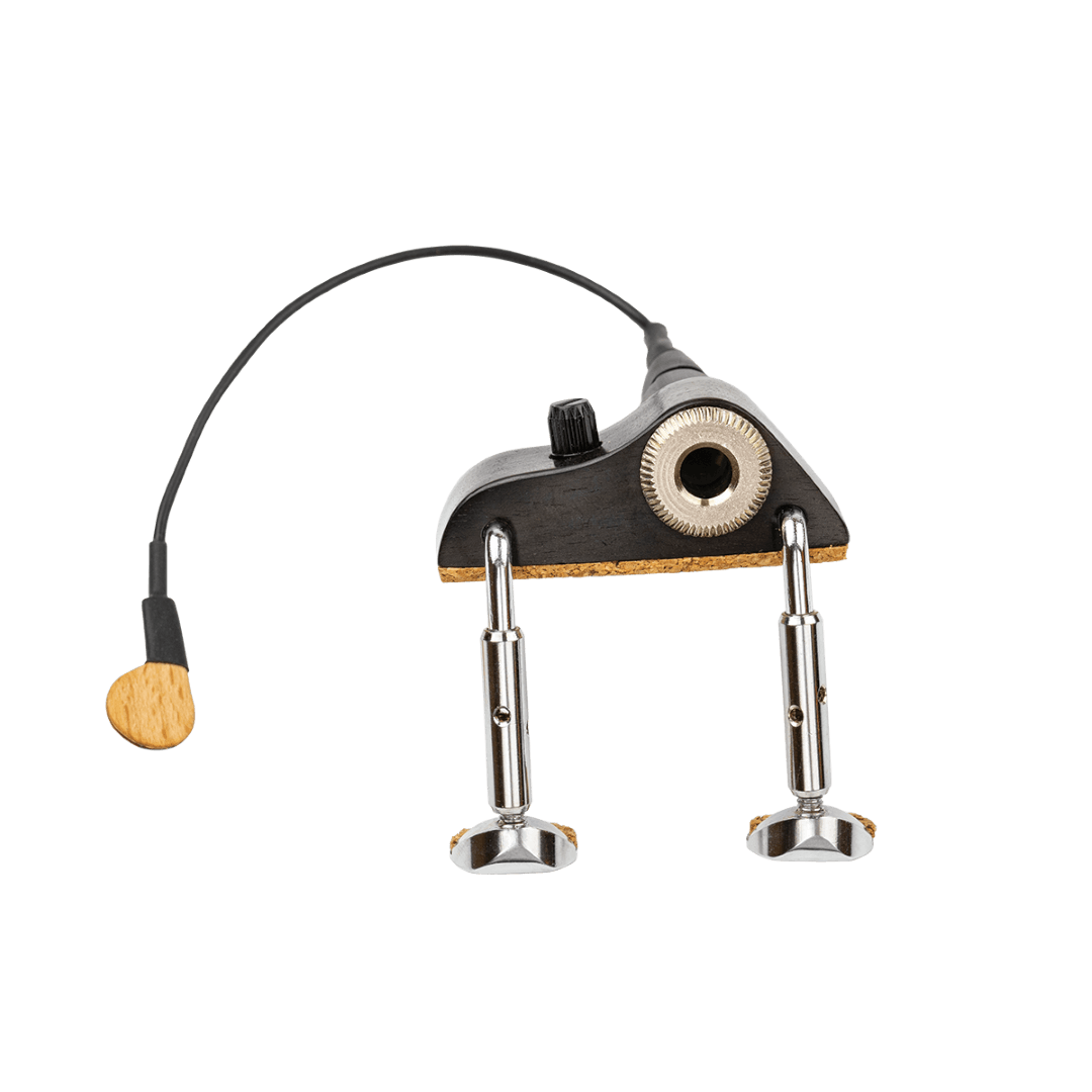 Capture the natural tone of your violin or viola with the KNA VV-3V Ebony Bridge-Mounted Violin/Viola Piezo Pickup. Featuring an onboard volume control, cork-lined barrel clamps, and elegant ebony housing, this passive pickup has a lightweight wooden sensor casing for maximum tonal sensitivity. It comes with adjustable barrels to fit larger instruments too. Experience great sound with the VV-3V, no batteries required.