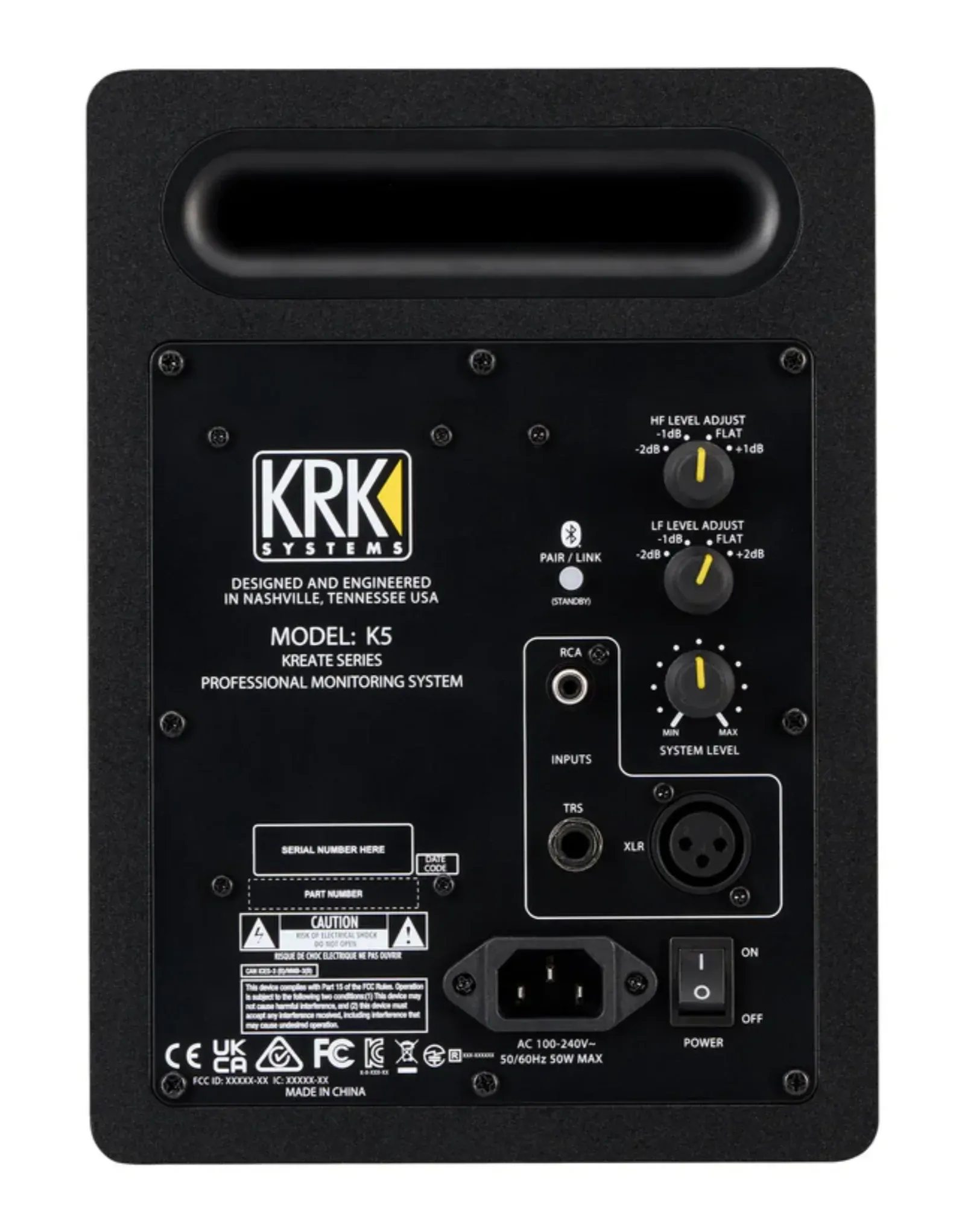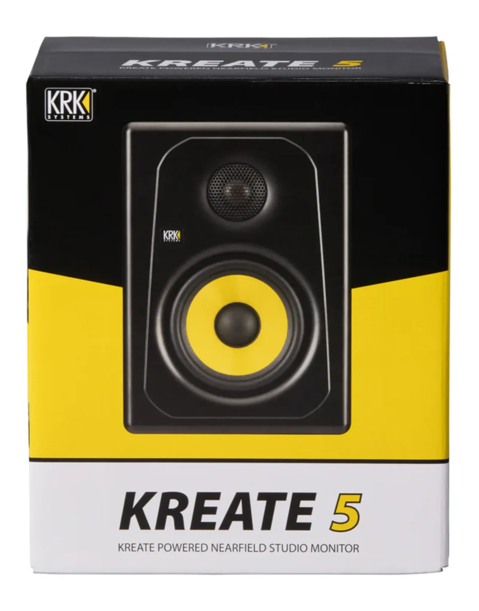 The KRK Kreate 5 Powered Studio Monitor delivers the clarity, accuracy, and punch that musicians, producers, and content creators need in smaller spaces. Its bi-amplified design drives a 5" woven glass-fibre woofer and 1" textile-dome tweeter, delivering a full, detailed response from 58Hz to 40kHz. With independent tone controls and acoustic boundary EQ options, you can fine-tune your mix to suit your room. The combination of Class D and Class A/B amplification ensures efficient power and low distortion, maintaining accuracy during long sessions. Bluetooth 5.3 True Wireless Stereo adds convenient wireless connectivity for referencing or streaming. Compact yet capable, the Kreate 5 combines professional-grade sound with flexible setup options for any workspace.