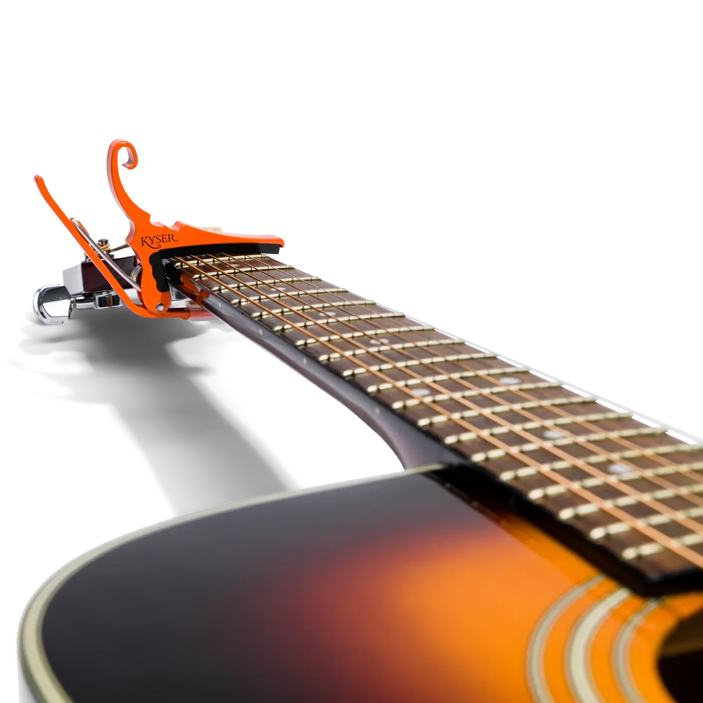 The first. The fastest. The Original. Kyser Quick-Change acoustic guitar capos changed everything when they hit the clubs of Deep Ellum, Texas in the 1980s, and they’re still the quickest capos in the West, coveted by the biggest artists on the world's biggest stages. The unique trigger mechanism never misfires. Stick it on whatever fret you’d like and it stays where it should, or leave it on the headstock ‘til you need it. Your Kyser keeps close.