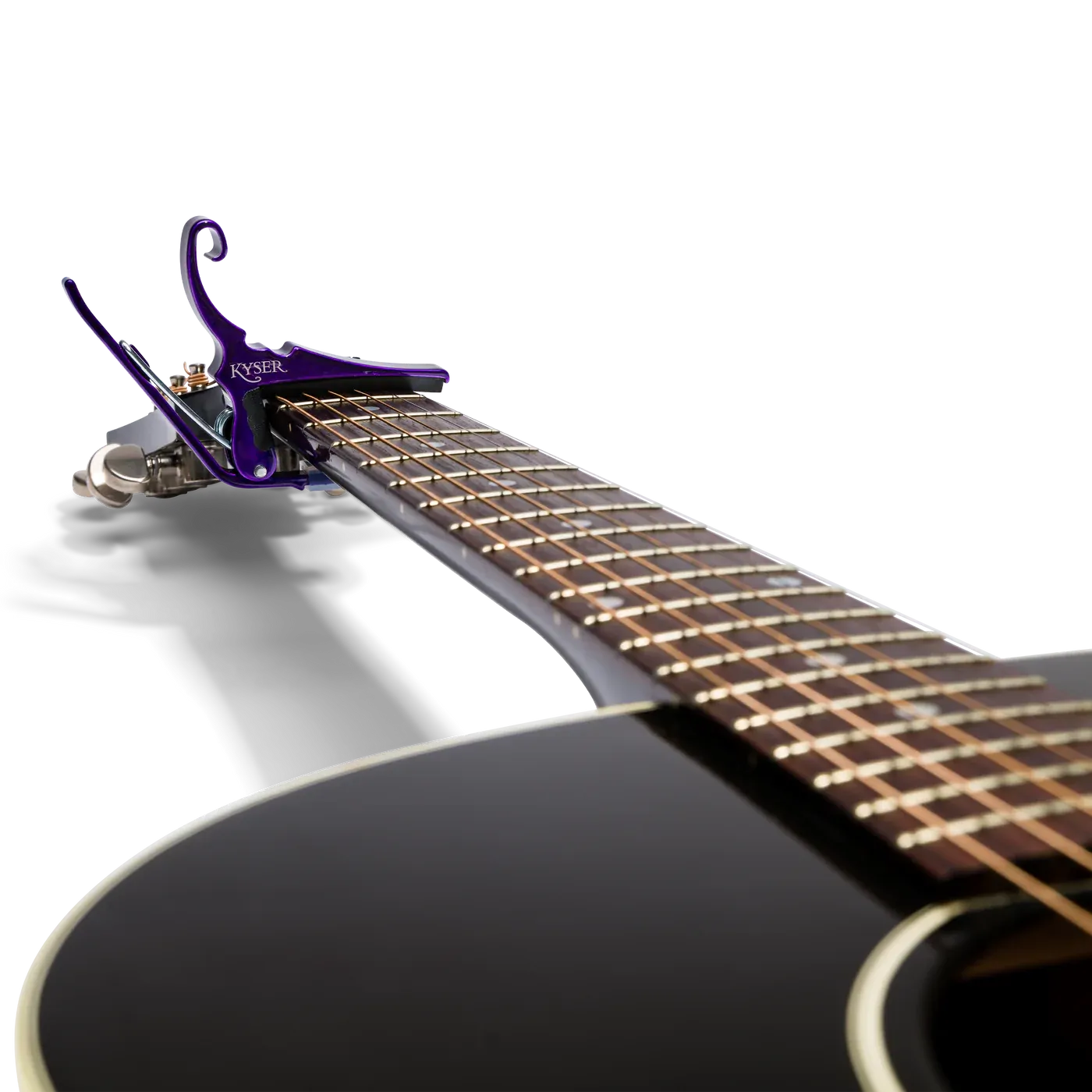 The first. The fastest. The Original. Kyser Quick-Change acoustic guitar capos changed everything when they hit the clubs of Deep Ellum, Texas in the 1980s, and they’re still the quickest capos in the West, coveted by the biggest artists on the world's biggest stages. The unique trigger mechanism never misfires. Stick it on whatever fret you’d like and it stays where it should, or leave it on the headstock ‘til you need it. Your Kyser keeps close.
