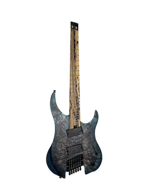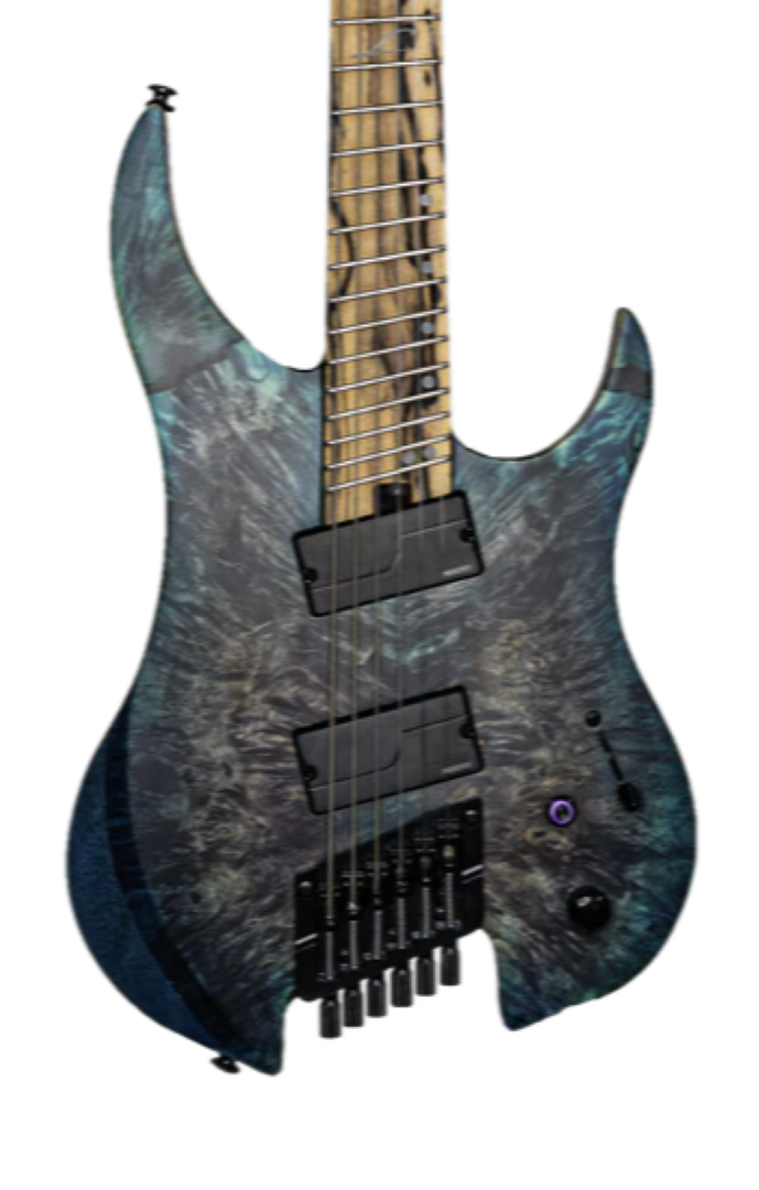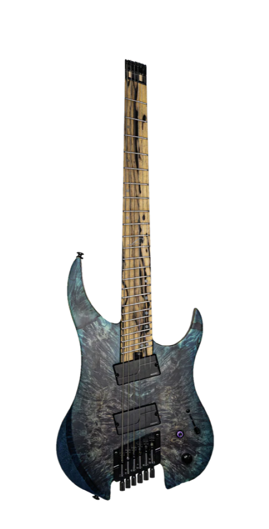 The Legator G6FX Ghost X 6 String Multi-Scale is part of Legator's flaghsip X series, featuring premium tonewoods and appointments, and the incredible new Galaxy finish. The combination of a super solid set-through 5 piece Wenge/Maple neck with 25.5"-26.5" multiscale, an eye-catching 16" radius Pale Moon Ebony fretboard, and 24 medium jumbo stainless steel frets, lets you shred comfortably and ergonomically for hours on end. A set of Fishman Fluence Modern pickups, with Push/Pull Voice Selection, sound brutal thanks to a solid Ash body and California Buckeye Burl top. Fishman Fluence pickups combine the soul of your favourite passive humbuckers, with the raw power and brutal aggression of actives. Voice 1 dishes out plenty of searingly crispy and crunchy tone - forget about mud, this setting has nothing but tight bass and the perfect amount of growl. Voice 2 is more organic, like a high-output passive - this setting loves distortion, and handles it with classic Fluence dynamics and response. The X series features plenty more player-friendly features, like a slick satin finish, locking nut and bridge, a killswitch, deluxe gig bag, and Luminlays on the side and the fretboard.