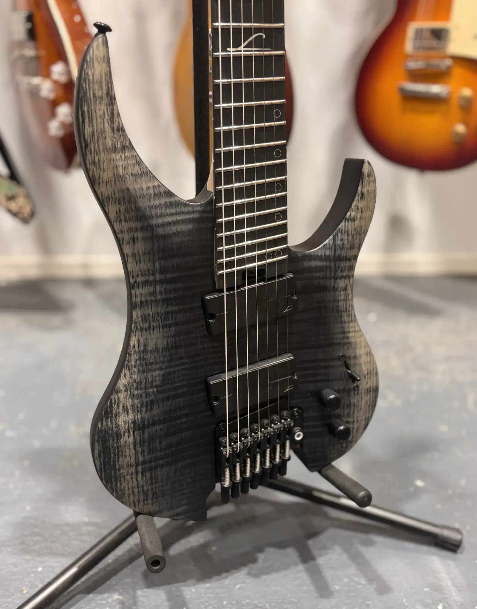 Legator G7FT Ghost Super Shred 7 String Multi-Scale Tremolo Flame Maple Black