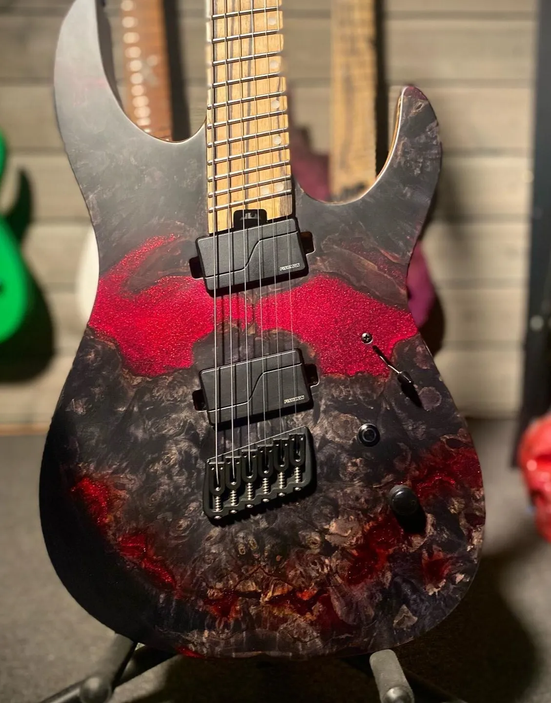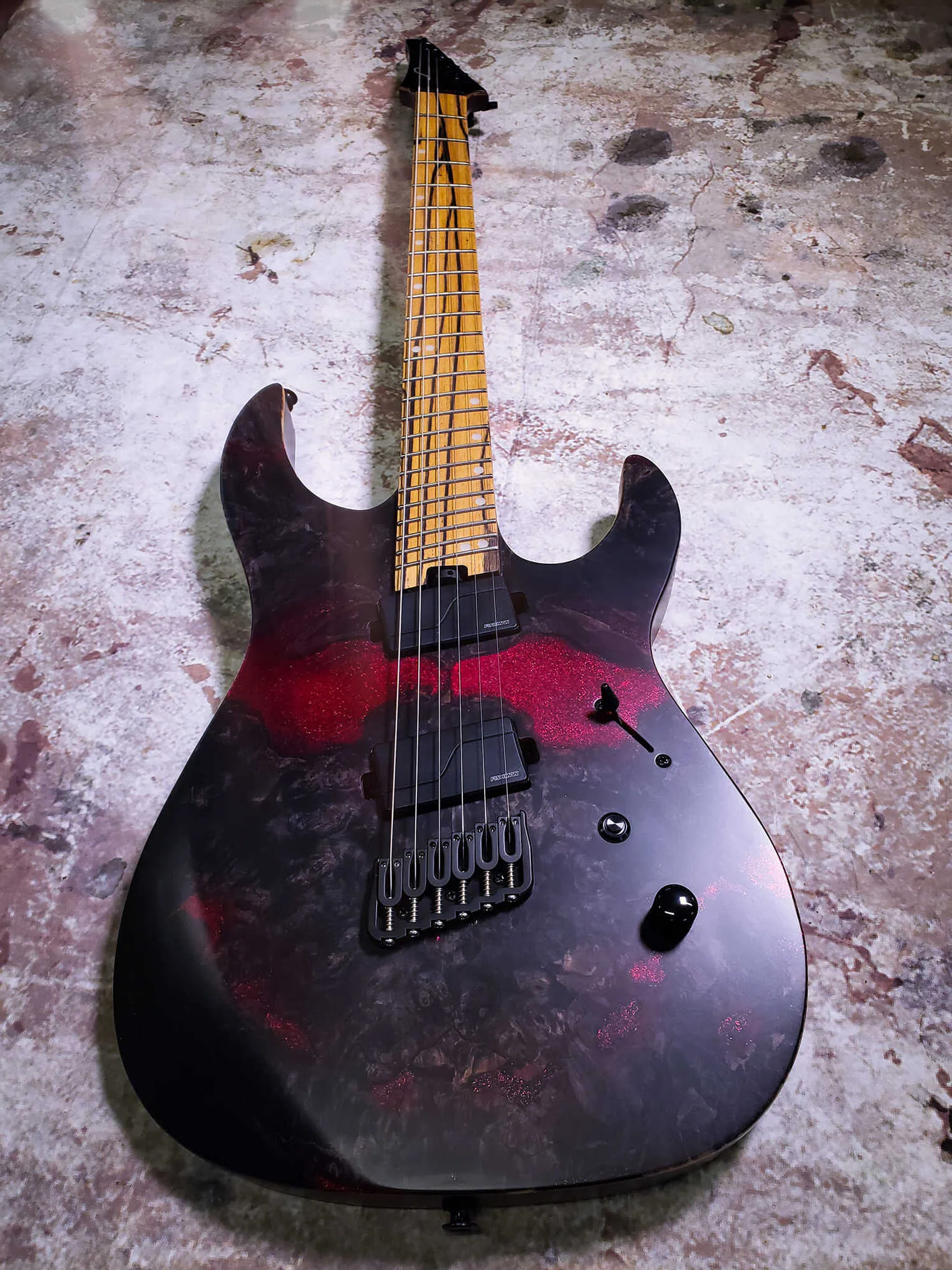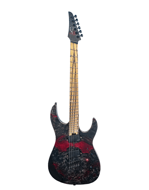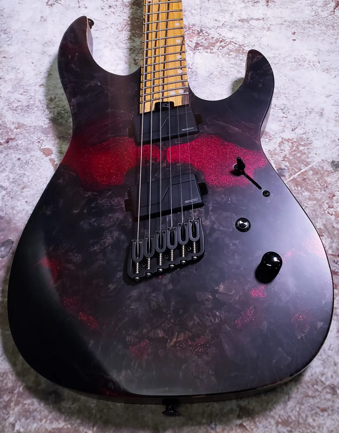 The Legator N6FX Ninja X 6 String Multi-Scale is part of Legator's flagship X series, featuring premium tonewoods and appointments, and the incredible new epoxy resin-infused Black Widow finish, which really makes the grain pop on the California Buckeye Burl top.