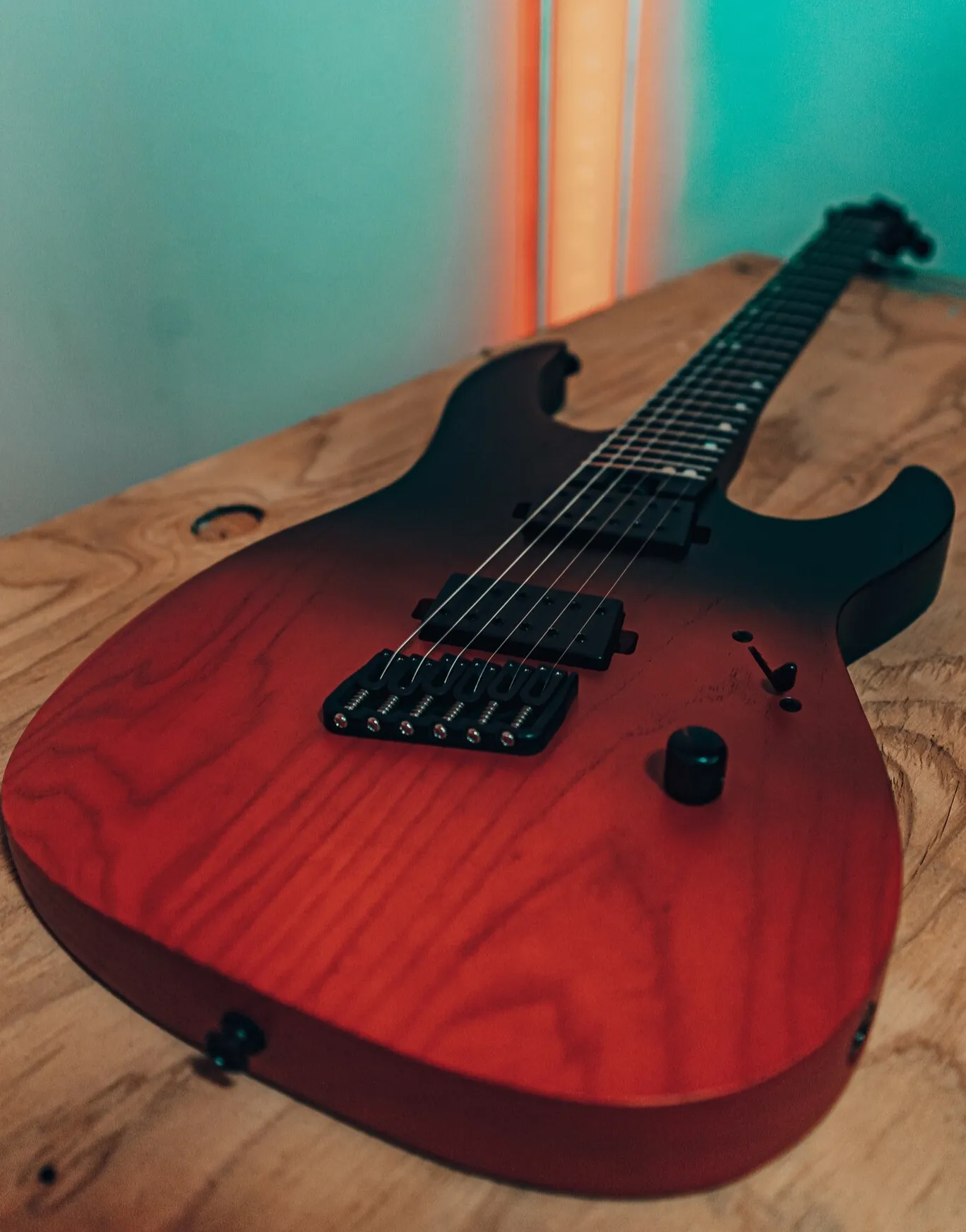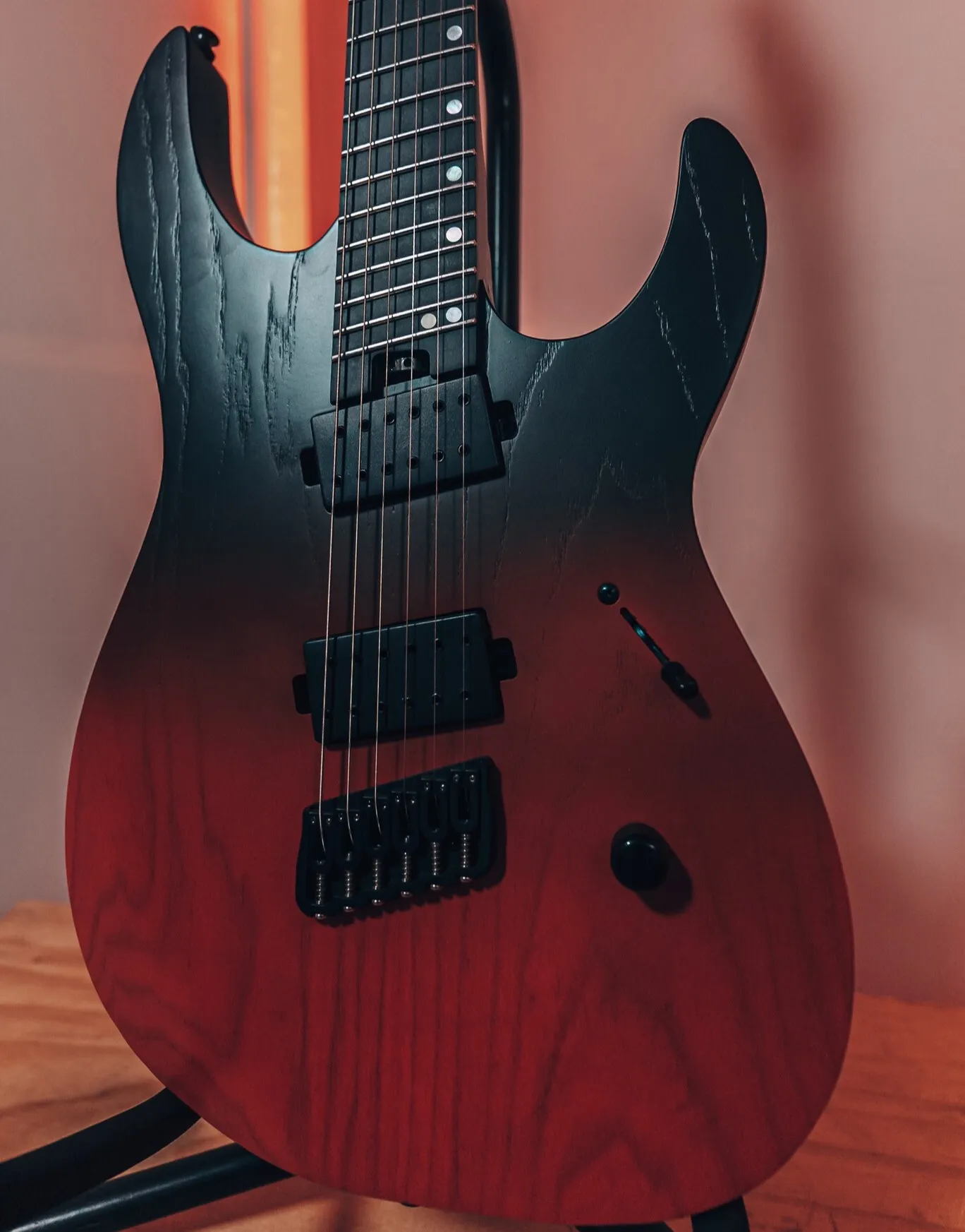 The performance series from Legator offer great value for money features such as Ash bodies, Legator passive Hive 2.0 humbuckers, Roasted Maple neck and 18" radius Ebony fingerboard. They are a pro level guitar at a price you can afford. The Ninja features a sleek modern design with great balance and resonance. This Ninja is finished in the gorgeous Crimson paint job, with the figured Ash grain still visible through the paint job. This 7 string Ninja also features a multi-scale fingerboard, for smooth modern playing. The HIVE 2.0 pickups are specifically designed for multi-scale instruments, to ensure you get well-balanced output and clarity across the fretboard.
