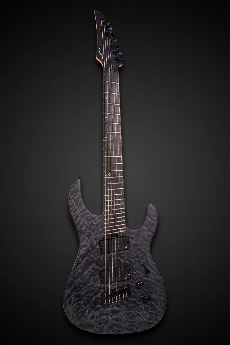 The Legator N7FSS Ninja Super Shred is a multi-scale beast built for high-performance shredding and heavy riffs. With its 25.5"-26.5" multi-scale Richlite composite fingerboard, bolt-on 3-piece maple neck, and lightweight mahogany body, this guitar offers unparalleled playability and tonal depth. The stunning quilted maple top adds visual flair, while the Legator Aftershock active humbuckers deliver crushing tones with clarity and punch. Equipped with 3mm jumbo stainless steel frets, a Graphtech nut, and Legator’s exclusive brass multi-scale bridge and locking tuners, this guitar is designed for precision and reliability.