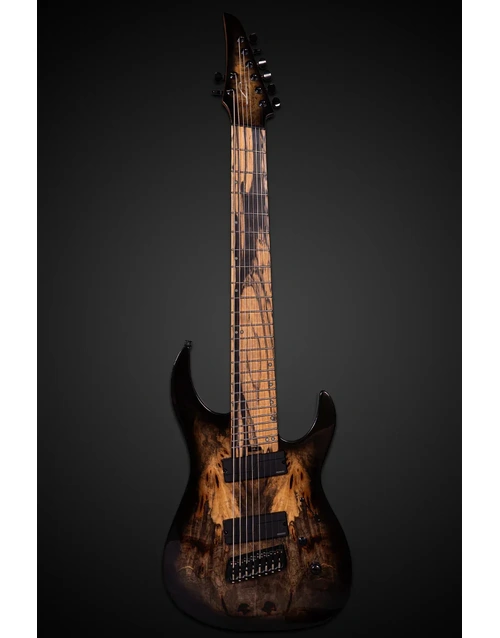 The Legator N8FOD Ninja Overdrive is a high-performance 8-string multi-scale guitar built for modern players who demand precision and versatility. Featuring a 26.5"–27.5" multi-scale design, this guitar provides optimal string tension and effortless playability across all registers. The bolt-on roasted maple neck and 18” radius pale moon ebony fingerboard ensure a fast and comfortable feel, while Luminlay side dots and offset inlays improve visibility in low-light settings. The alder body, topped with a striking California Buckeye Burl finish in Jupiter Burst Gloss, delivers a resonant and balanced tone. Equipped with Fishman Fluence Modern pickups with push/pull voice selection, the N8FOD provides a dynamic range of powerful tones. Additional features include an LED killswitch, master volume control, 3-way blade switch, and Legator’s 22:1 ratio locking tuners for rock-solid tuning stability.