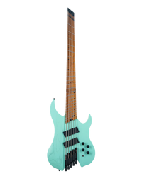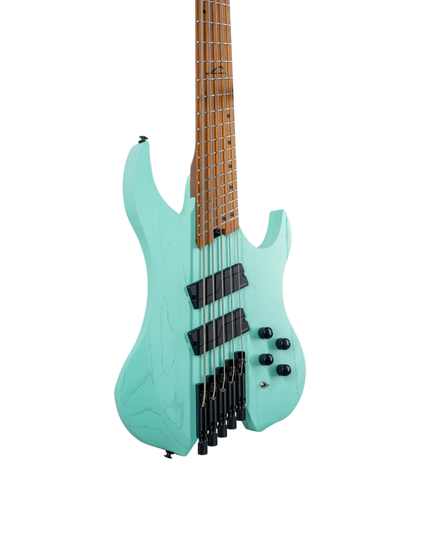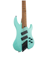 The Legator WR5F Wraith 5 String Multi-Scale Bass, finished in Seafoam Green, is purpose designed for speed and style. A headless Roasted Maple neck with 14" radius multi-scale Richlite Composite Fingerboard are a dream to play, and its compact and ergonomic design makes for easy travel and hours of comfortable playability. A pair of Fishman Fluence Modern Active Bass Humbuckers sound massive thanks to a solid Ash body, with plenty of powerful punch, devastating lows, and brutal bite in the top end. A master volume, blend, 2-band EQ, and 3-way toggle give you a plethora of tonal options, while a Legator Monorail bridge and Legator Precision tuners offer solid tuning stability. The Wraith features plenty more player-friendly features, like a deluxe gig bag, and Luminlay Side Dots.