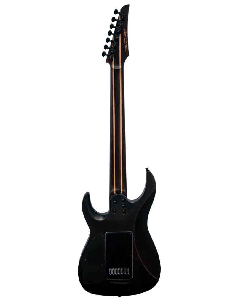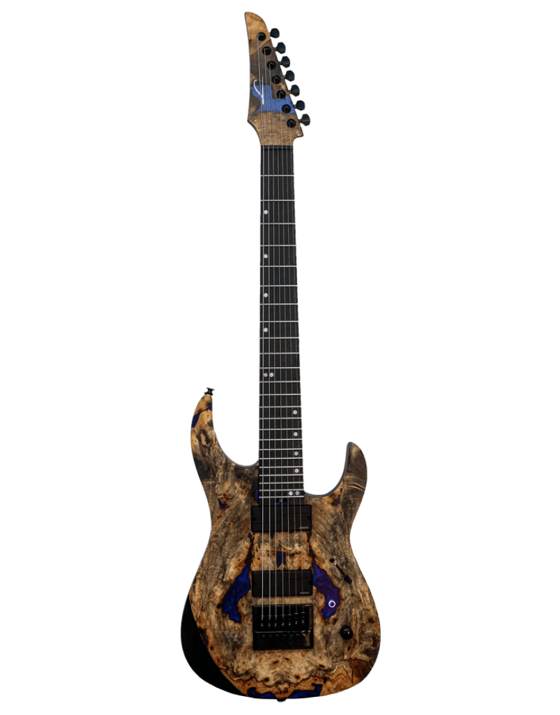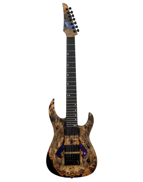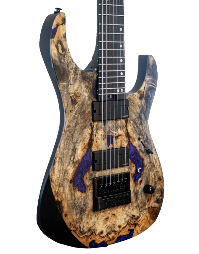 The Legator X7 Ninja X 7 String is part of Legator's flagship X series, featuring premium tonewoods and appointments, and the incredible new epoxy resin-infused Royal Purple finish, which really makes the grain pop on the California Buckeye Burl top.