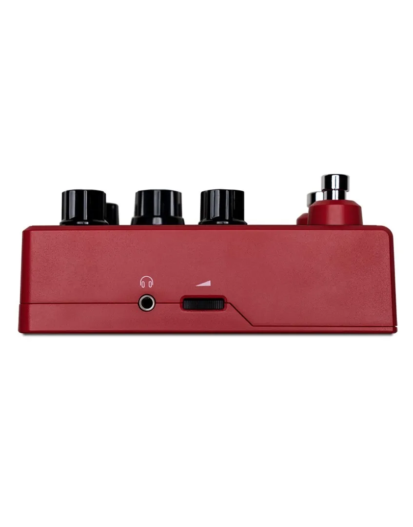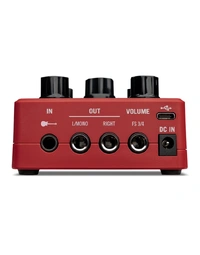 The POD Express is an ultra-portable amp and effects processor, perfect for guitarists on the move. With simple controls, it offers seven amps, seven cabs, and 17 effects, including a looper. Derived from the HX family, it ensures exceptional sound quality and authentic feel. Powered by three AA batteries (included) or an optional 9-volt power supply, it's ready for any situation. The stereo output delivers effects as intended, and onboard footswitches provide easy control. Connect headphones for private practice or use the USB for recording.