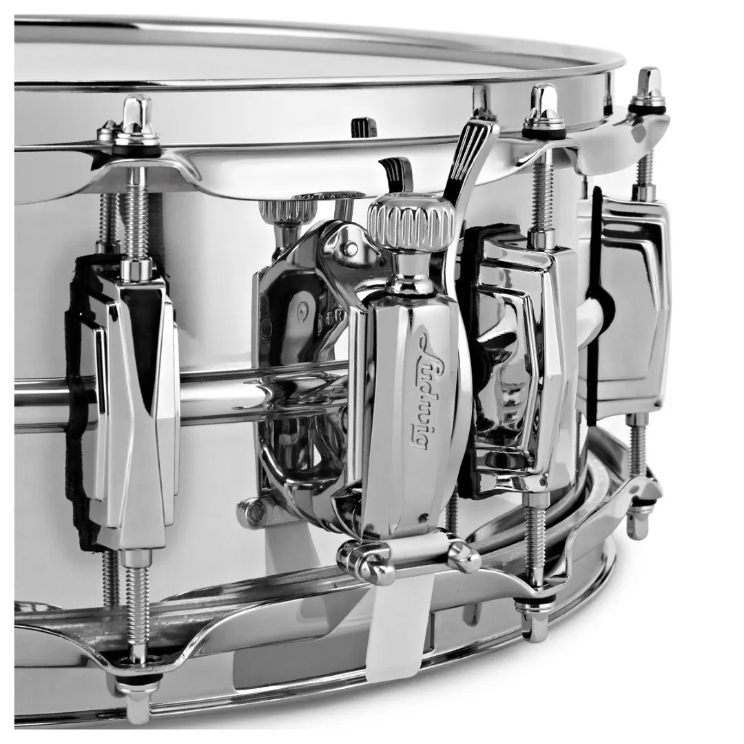 This 14" x 5" Ludwig Supraphonic snare has the tone that fuelled the most hit recordings in history. With a smooth-shell USA-made chrome-plated, 1.7mm seamless aluminium shell, the Ludwig Supraphonic gives you the perfect balance between full resonant tone and snare crack, perfect for the studio or on the stage, for Jazz to Metal, and everything in between. The Ludwig Supraphonic also features 10 imperial lugs, 2.3mm steel triple flanged hoops, P88AC throw off and P35P butt plate.
