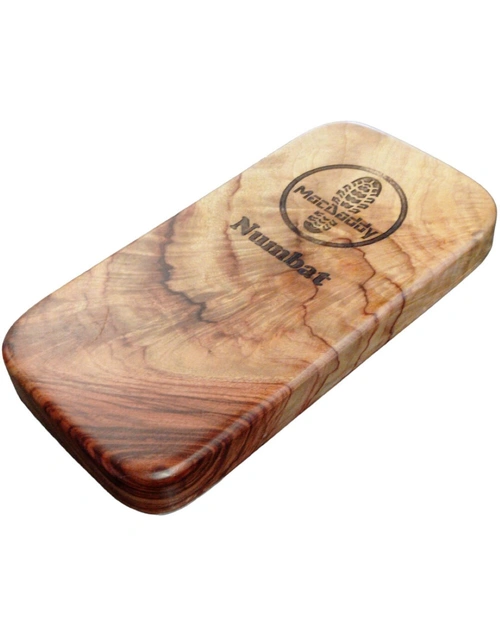 The Macdaddy MDN2 "Numbat" Stomp Box in Natural Finish is a full size stomp box made without a raised strike plate for those musicians who prefer to stand during their performance. Sounding very similar to the traditional thump of the Wombat, choosing this stomp box will come down to a personal comfort issue and your performance style. Featuring the stunning grain of camphor laurel, each has it’s own unique finish.