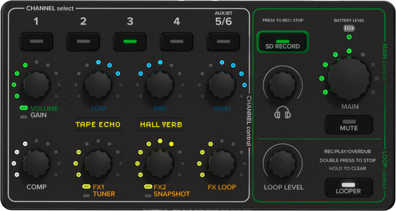 The breakaway controller mounts to your mic stand so you can access levels, effects, snapshots, looper and tuner without leaving your performance position, and ShowBox offers extensive connectivity including USB-C streaming, micro SD recording, Bluetooth playback and a full I/O suite. Expressive EQ and compression on each channel make fine-tuning easy, while feedback elimination keeps your mix clean.