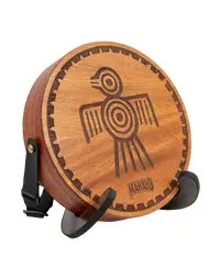 The Mahalo MPJ1BD-PK Laptop Cajon Pack with Bird Graphic is a compact and versatile percussion instrument perfect for solo play or accompaniment. With two 10" mahogany playing surfaces and a 2.2" deep shell, it features a fixed 20-strand snare for Flamenco-style sounds on the top surface and a traditional Peruvian cajon tone on the bottom. The built-in sound port enhances bass response, adding depth to its rich, resonant tones. Designed for convenience, it can be played on your lap, or on your body while standing with the included adjustable strap. Its lightweight design and included heavy-duty carry bag make it ideal for travel, small performances, or practice sessions.