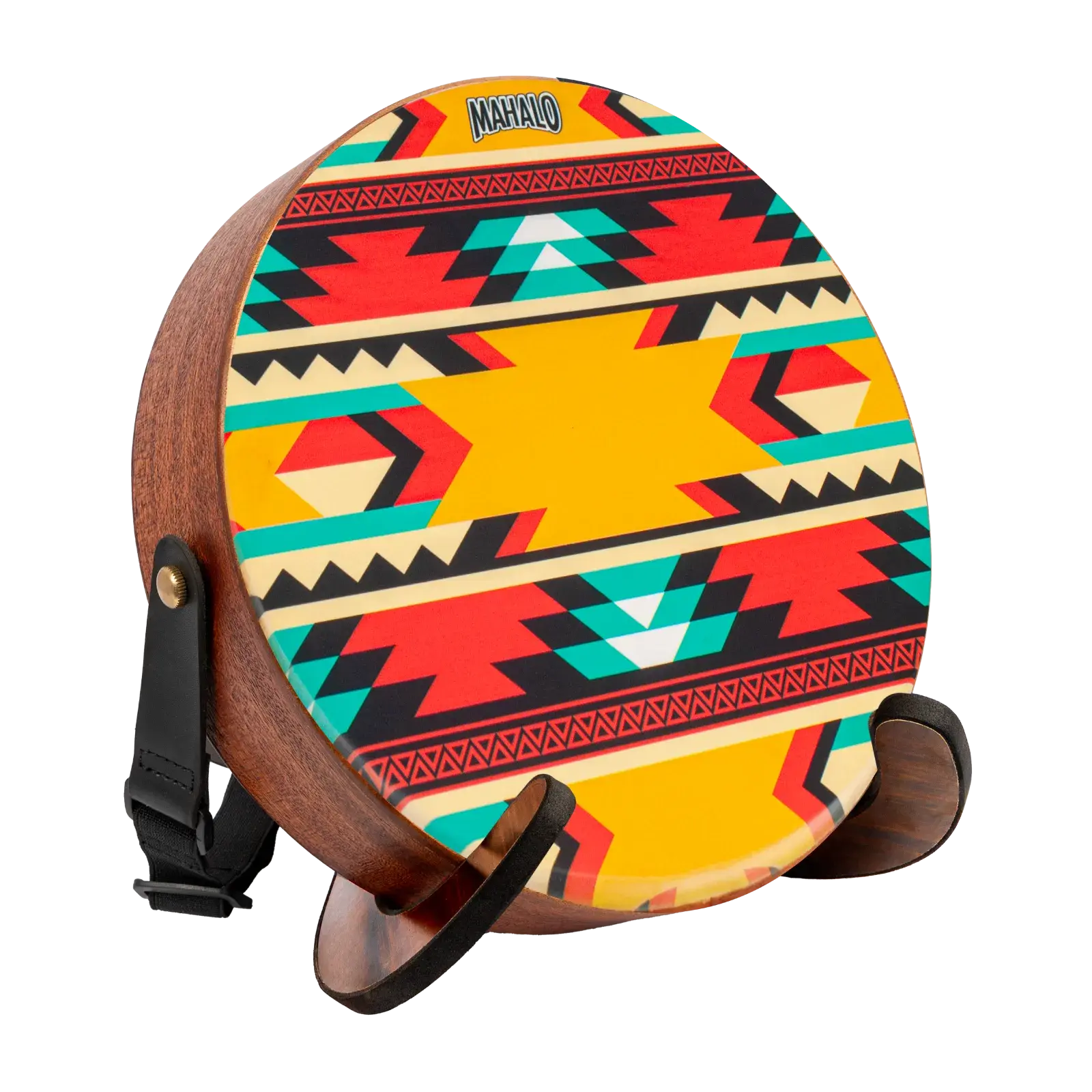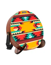 The Mahalo MPJ1FB-PK Laptop Cajon Pack Fabric Graphic is a compact and versatile percussion instrument perfect for solo play or accompaniment. With two 10" mahogany playing surfaces and a 2.2" deep shell, it features a fixed 20-strand snare for Flamenco-style sounds on the top surface and a traditional Peruvian cajon tone on the bottom. The built-in sound port enhances bass response, adding depth to its rich, resonant tones. Designed for convenience, it can be played on your lap, or on your body while standing with the included adjustable strap. Its lightweight design and included heavy-duty carry bag make it ideal for travel, small performances, or practice sessions.