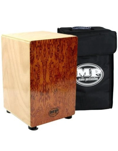 The Mano Percussion Rosewood Cajon With Bag is a cajon with adjustable internal snare wires, Rosewood faceplate, and heavy duty padded waterproof nylon bag.