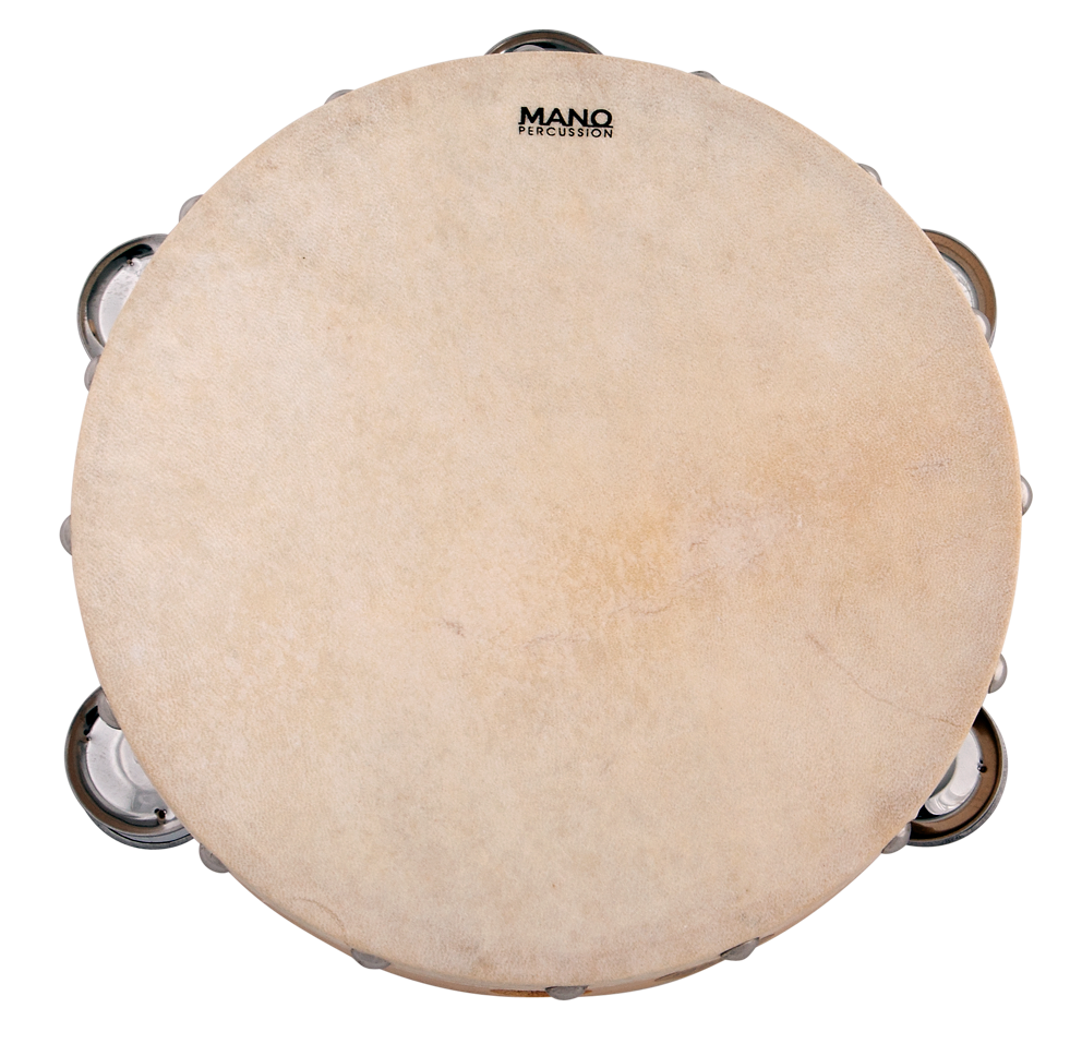 8" tambourine. Wood rim with natural skin head. Non-tunable. 5 pairs of jingles.