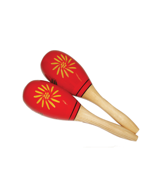 Mano Wooden Maracas Floral Design are a pair of 9.5" long wooden oval shaped maracas with a floral hand painted design.