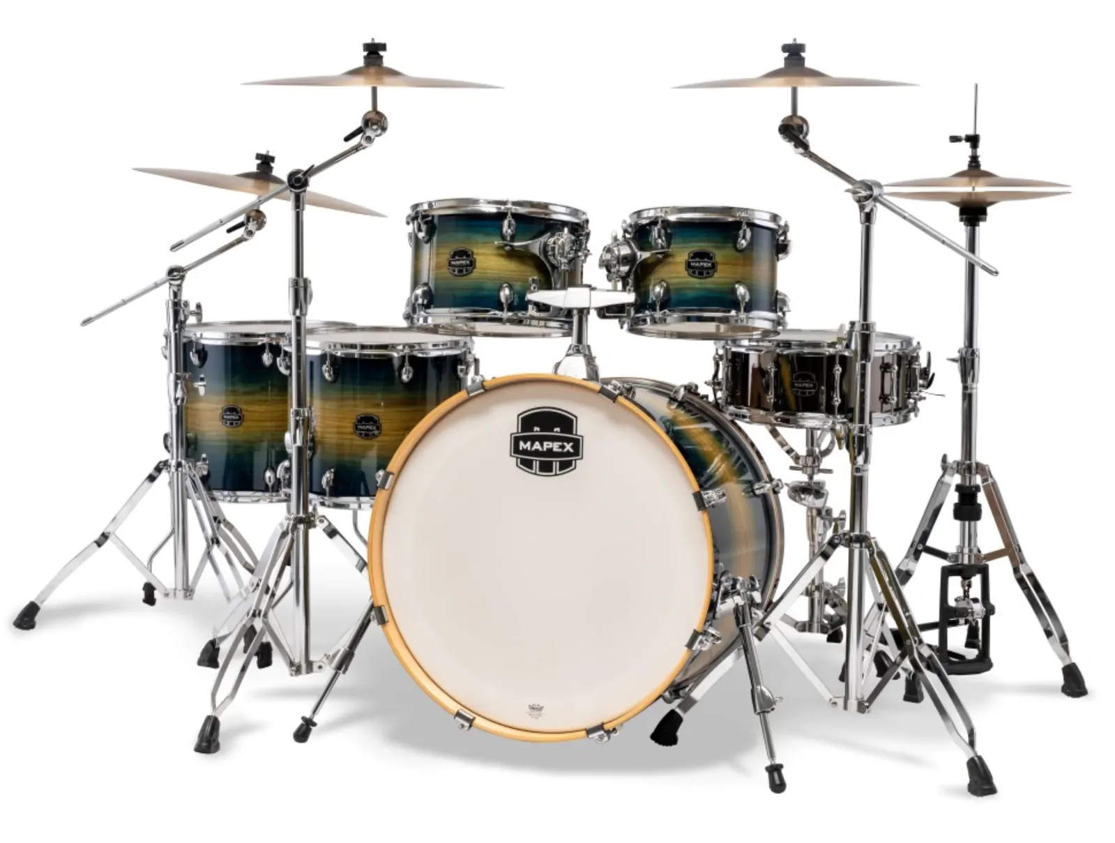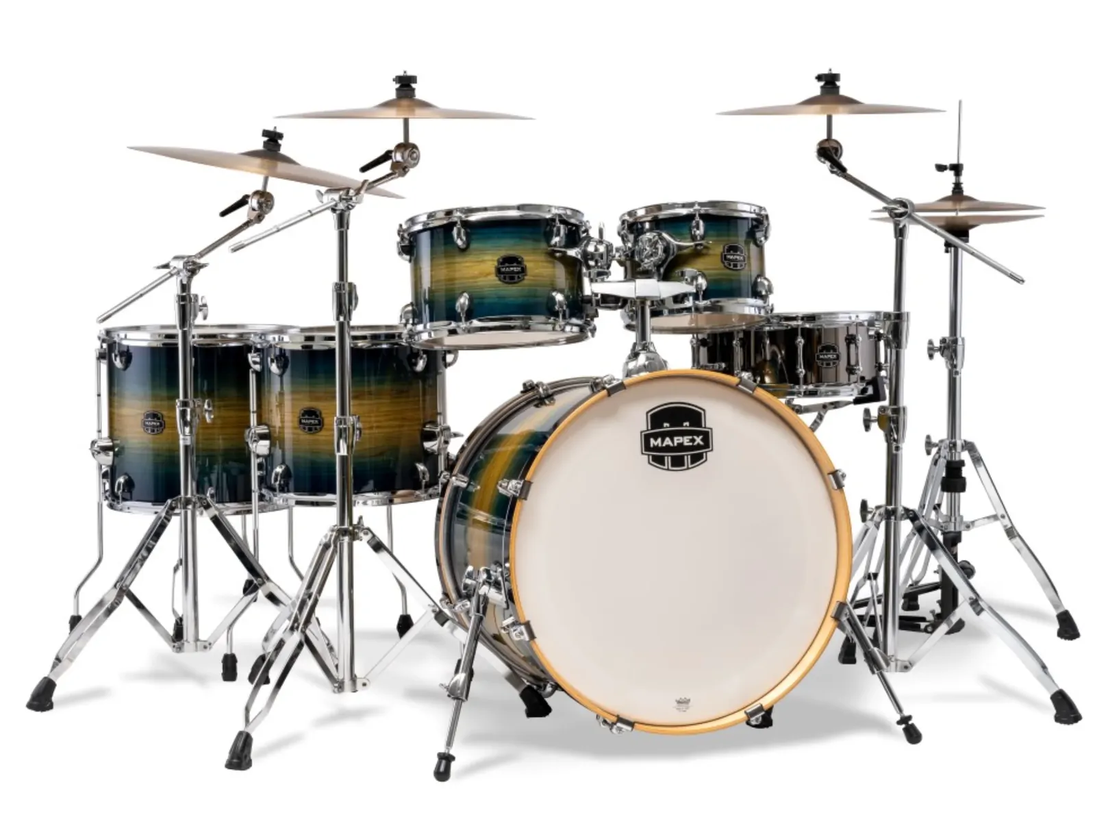 The Mapex AR628SFUV Armory Studioease Shell Pack offers precision, versatility and stage-ready looks. Featuring fast-sized toms and 8-ply Birch/Maple/Birch hybrid shells, this 6-piece kit delivers clear attack, deep tone, and outstanding projection. The SONIClear bearing edges and suspension system improve resonance and tuning stability, while Olive Wood veneers add a premium visual finish. It includes the 14" x 5.5" TOMAHAWK steel snare for added cut and clarity. The Studioease configuration provides easier tom placement and tighter response, ideal for modern drumming styles.