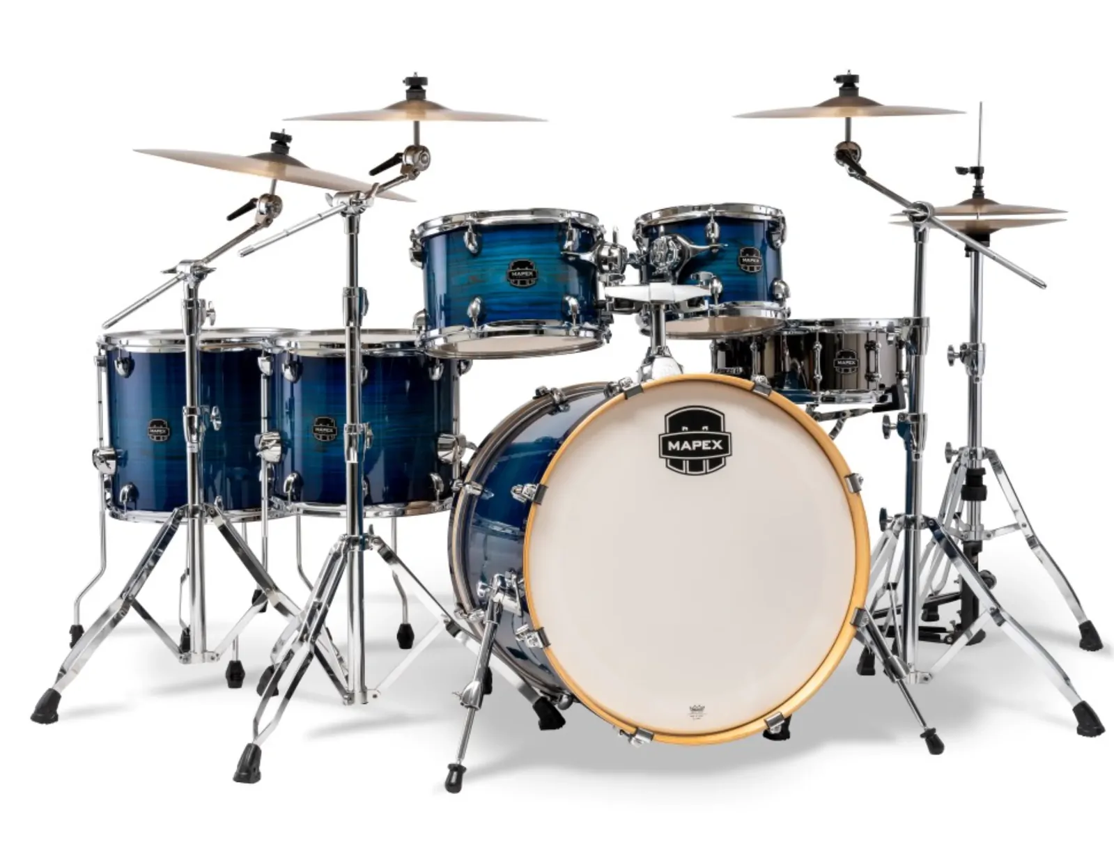 The Mapex AR628SFUV Armory Studioease Shell Pack offers precision, versatility and stage-ready looks. Featuring fast-sized toms and 8-ply Birch/Maple/Birch hybrid shells, this 6-piece kit delivers clear attack, deep tone, and outstanding projection. The SONIClear bearing edges and suspension system improve resonance and tuning stability, while Olive Wood veneers add a premium visual finish. It includes the 14" x 5.5" TOMAHAWK steel snare for added cut and clarity. The Studioease configuration provides easier tom placement and tighter response, ideal for modern drumming styles.