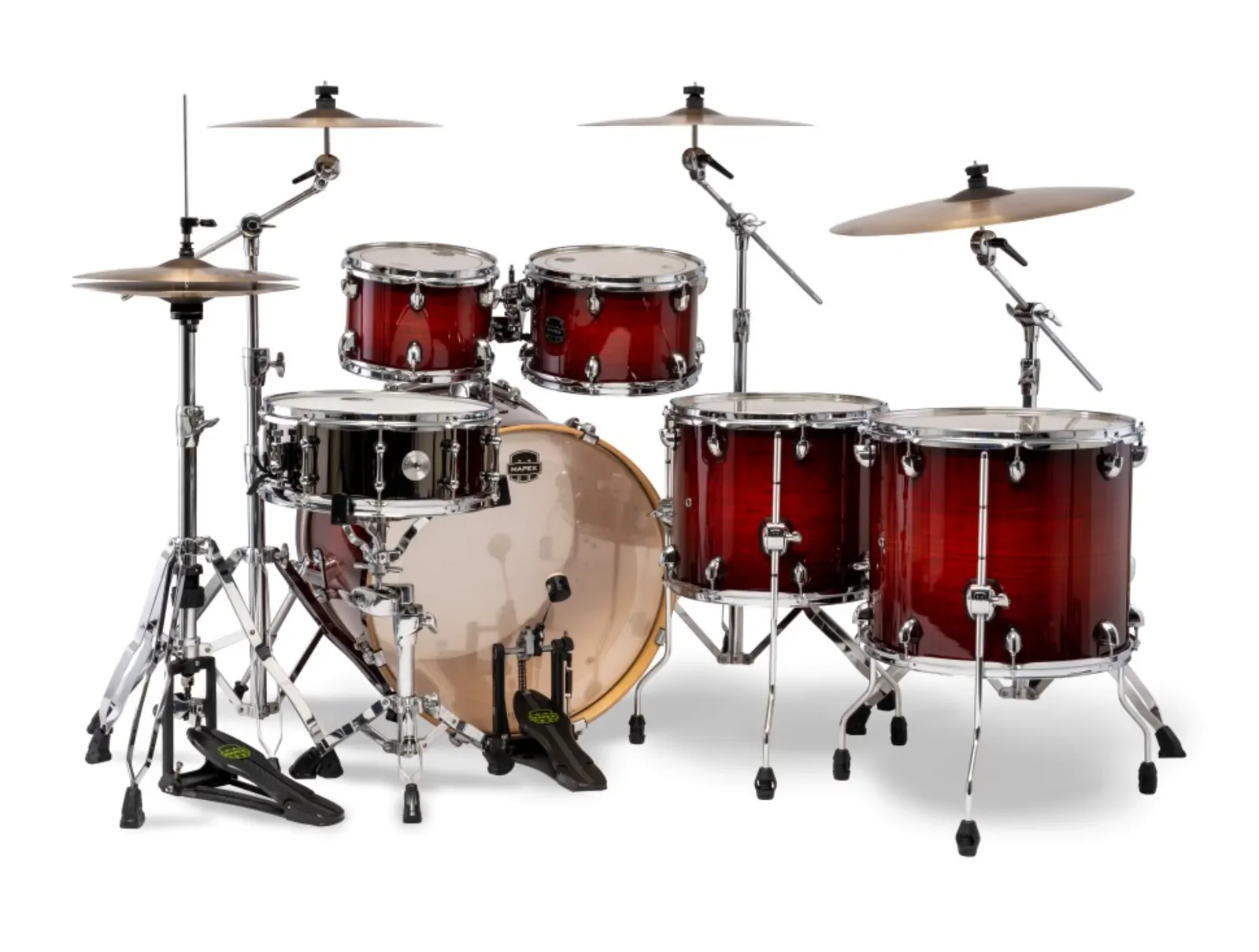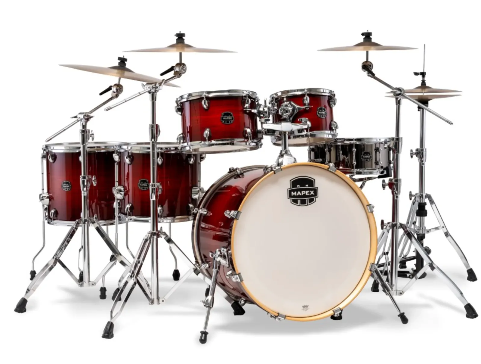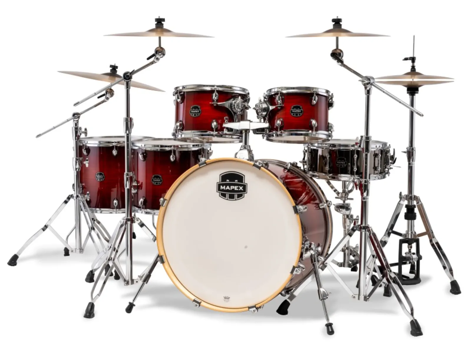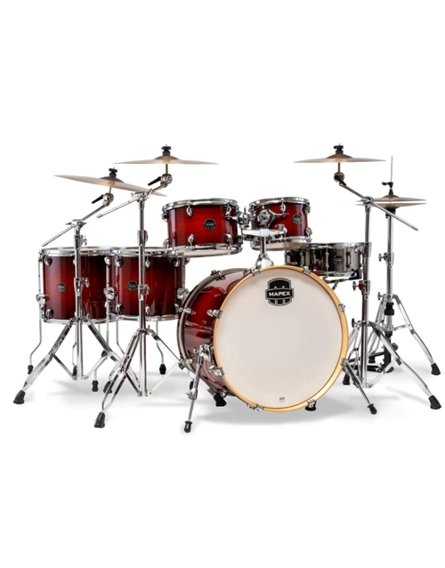 The Mapex AR628SFUV Armory Studioease Shell Pack offers precision, versatility and stage-ready looks. Featuring fast-sized toms and 8-ply Birch/Maple/Birch hybrid shells, this 6-piece kit delivers clear attack, deep tone, and outstanding projection. The SONIClear bearing edges and suspension system improve resonance and tuning stability, while Olive Wood veneers add a premium visual finish. It includes the 14" x 5.5" TOMAHAWK steel snare for added cut and clarity. The Studioease configuration provides easier tom placement and tighter response, ideal for modern drumming styles.