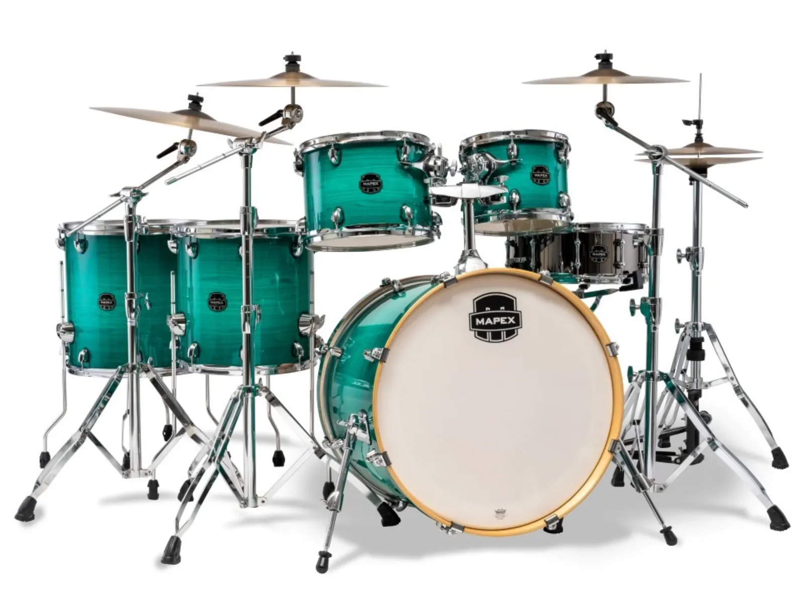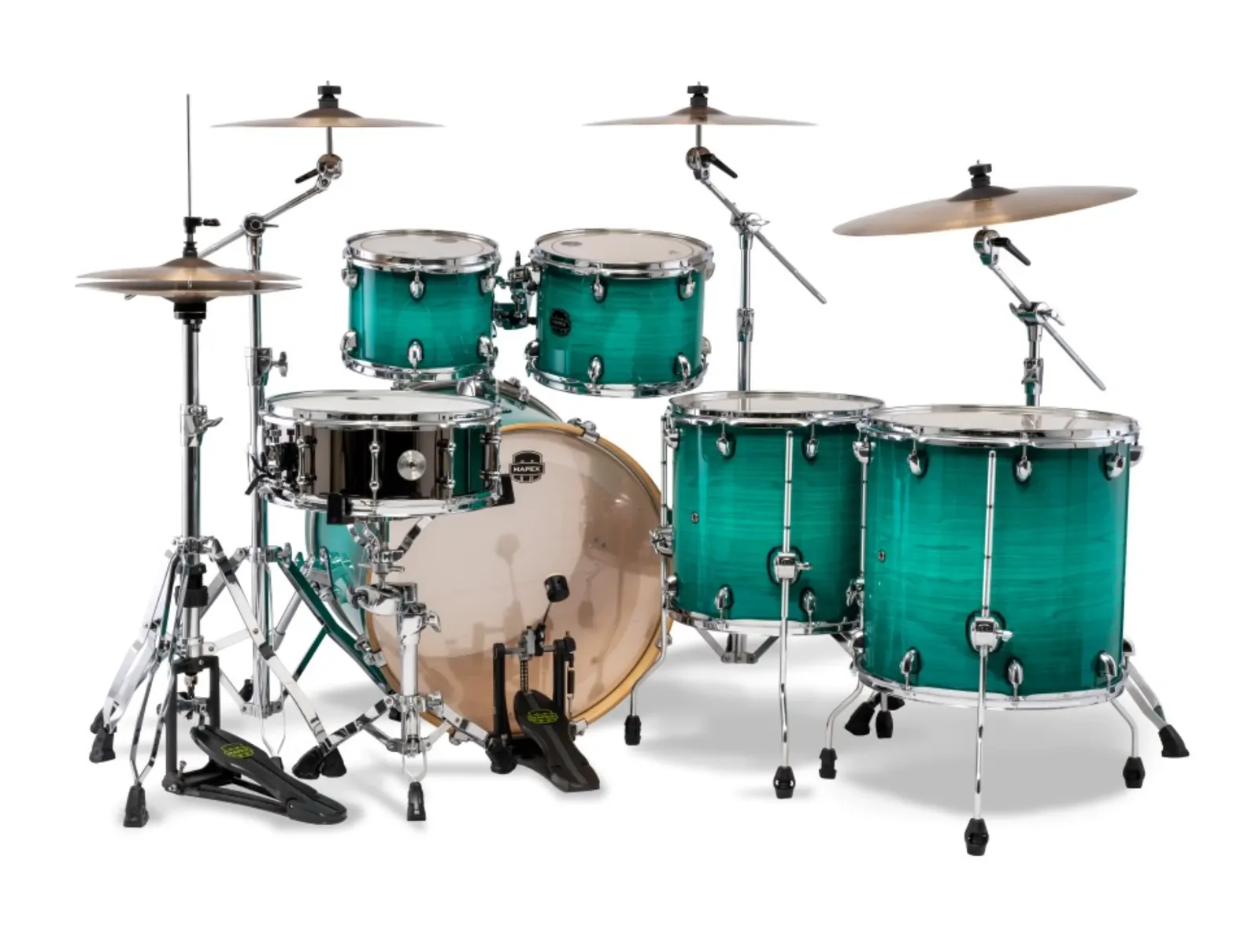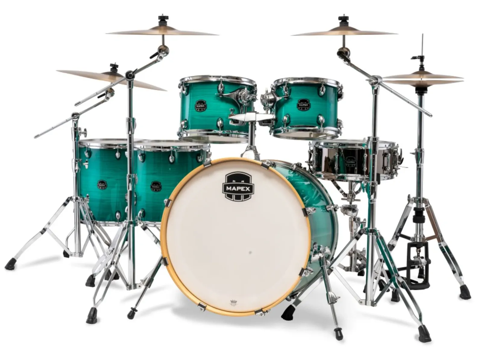 The Mapex AR628SV Armory Studioease Shell Pack is a powerful and expressive 6-piece kit built for performance and tone. Its 8-ply Birch/Maple/Birch hybrid shells offer warmth, projection, and clarity, enhanced by SONIClear bearing edges and suspension for superior resonance and easy tuning. The TOMAHAWK steel snare delivers punch and presence, while the Studioease configuration with 22" kick and two floor toms offers a versatile setup for studio or stage. Premium Olive Wood veneers complete the look with a sophisticated finish.