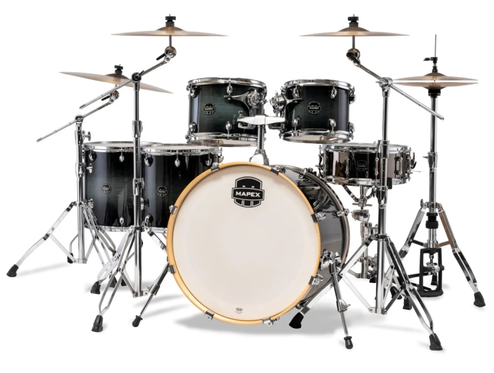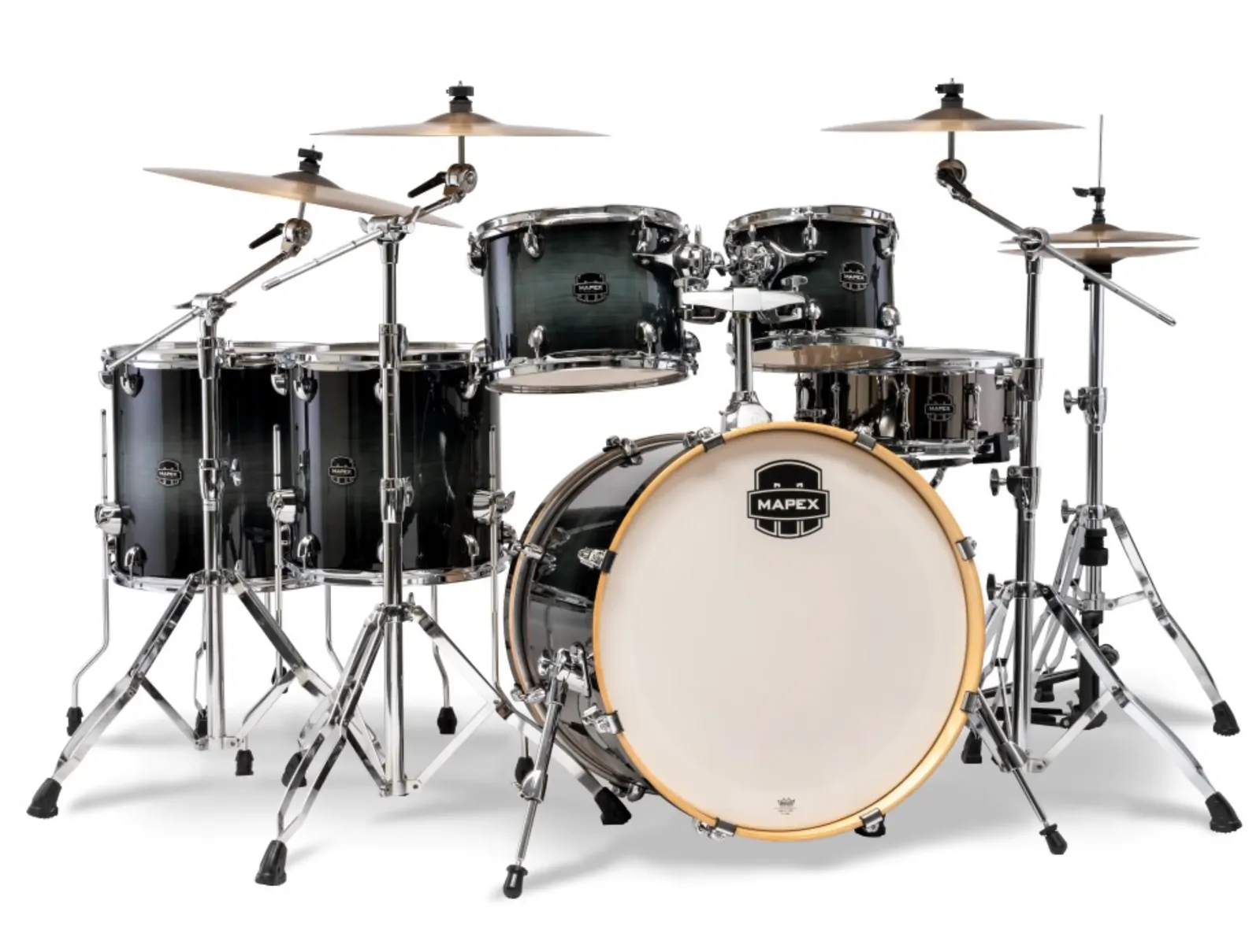 The Mapex AR628SV Armory Studioease Shell Pack is a powerful and expressive 6-piece kit built for performance and tone. Its 8-ply Birch/Maple/Birch hybrid shells offer warmth, projection, and clarity, enhanced by SONIClear bearing edges and suspension for superior resonance and easy tuning. The TOMAHAWK steel snare delivers punch and presence, while the Studioease configuration with 22" kick and two floor toms offers a versatile setup for studio or stage. Premium Olive Wood veneers complete the look with a sophisticated finish.