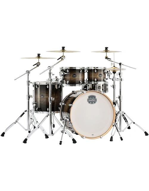 The 6-ply 7.2mm Birch/Maple/Birch Hybrid Shells are a testament to Mapex's craftsmanship, delivering a tone that's rich, resonant, and punchy. The Olive Wood Veneer with sophisticated lacquered finish adds a touch of elegance, making this kit stand out on any stage. Virgin Bass Drums, standard in all configurations, provide increased body and low-end kick sound. SONIClear Tom Holders offer ultimate setup flexibility.