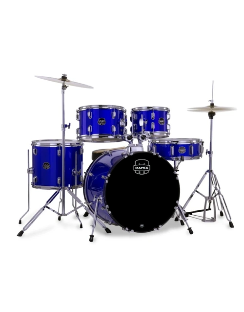 The Mapex Comet 5-Piece Drum Kit is an ideal all-in-one solution for aspiring drummers, offering everything needed to get started. Featuring 9-ply, 7.2mm poplar shells, it delivers a warm, full-bodied tone with excellent resonance. The SONIClear bearing edges ensure easy tuning and optimal tonal clarity, making setup hassle-free. The TH6215 tom holder provides 360° positioning for a comfortable and personalised playing experience. This kit includes a complete hardware package with a cymbal stand, snare stand, hi-hat stand, single pedal, and throne. Also included are 14” hi-hats and a 16” crash cymbal, providing bright, clear tones to complement the drum sound.