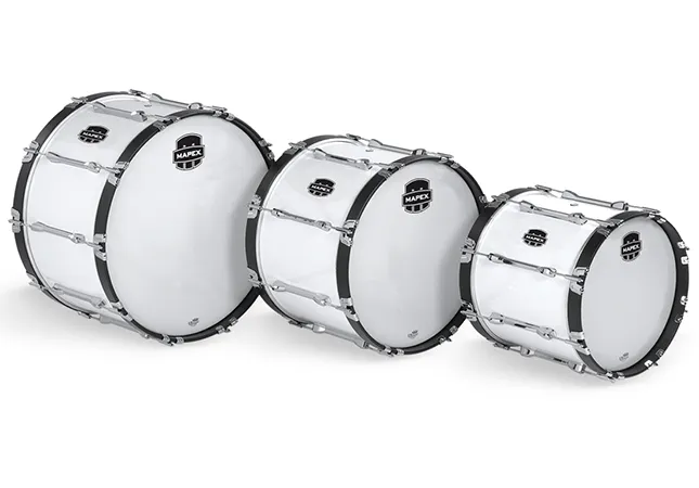 The Mapex QLB2014-SW Qualifier Series Marching Bass Drum in Snow White is a 508mm x 356mm (20" x 14") drum built for projection and reliability. Its maple/birch shell and matching hoops deliver a strong, resonant sound that blends well in any marching ensemble. Heavy-duty cast aluminium lugs and tension rods provide excellent tuning stability, even at high tension, while Remo UX Smooth White heads offer a consistent, responsive feel. Its lightweight construction makes it easy to carry, perfect for younger players or long rehearsals. Carrier not included (optional QLH02 Bass Drum Carrier available). At Riffs & Licks Music, we think this Snow White bass drum is ideal for schools and ensembles wanting a durable, great-sounding drum that’s easy to handle.