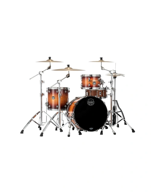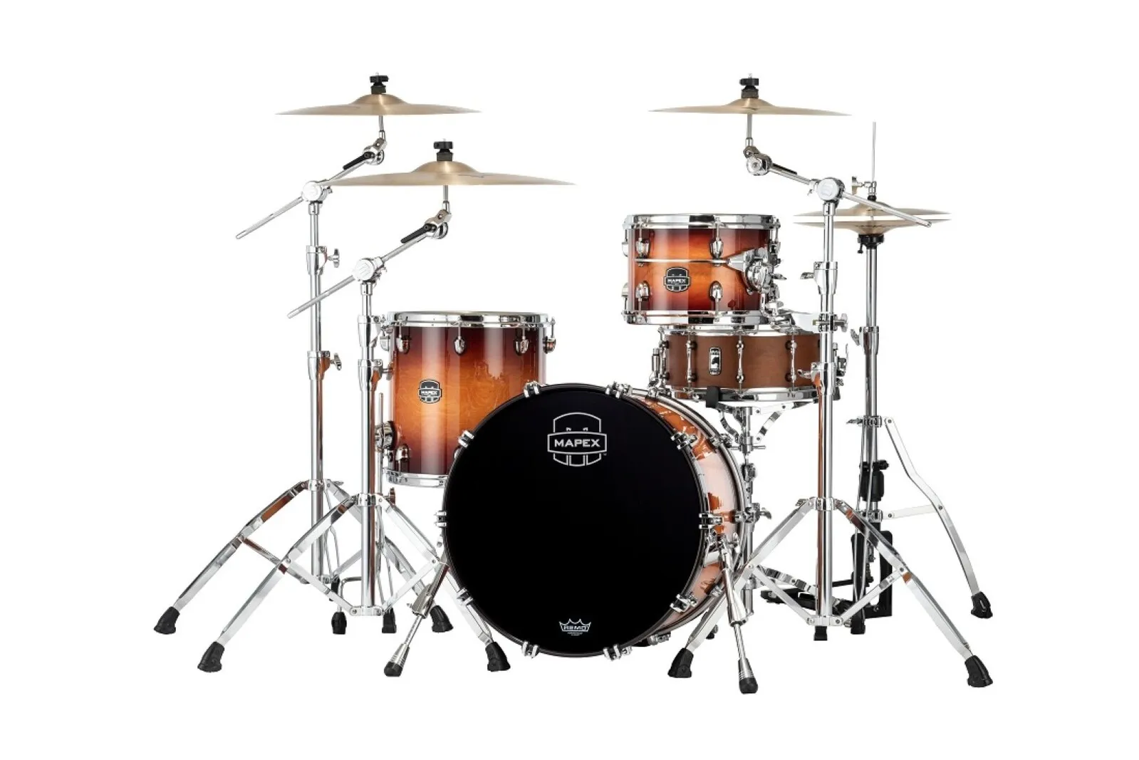 Introducing the Mapex Saturn Evolution Hybrid 3-Piece Straight Ahead Shell Pack, a revolutionary drum kit redefining modern drum sounds. Featuring a unique hybrid-shelled system with maple/walnut bass drum and birch/walnut toms, this kit delivers a dynamic range from clear and punchy high register tones to warm, round lows. The Halo Mounting System ensures full resonance with minimal shell interference, while the Adjustment Knob allows for customizable decay control. Crafted with a Birch/Walnut hybrid shell toms and Maple/Walnut kick, this kit combines the sonic characteristics of walnut, maple and birch for a dark, punchy, and dry sound. With Chamber Specific Design optimizing each drum's performance, this kit offers an unparalleled symphony of sound.