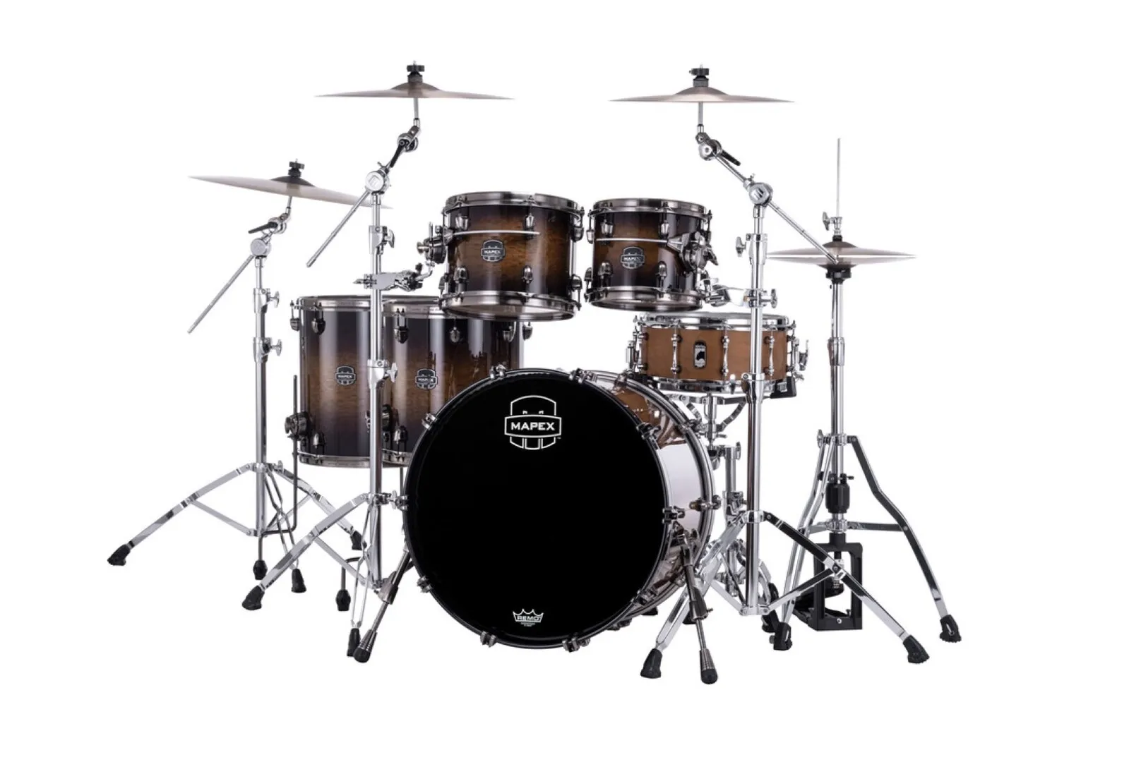 Introducing the Mapex SE628XM Saturn Evolution Maple/Walnut 5-Piece Workhorse Shell Pack, a pinnacle of drum craftsmanship marrying tradition with innovation. Featuring the iconic Saturn Maple/Walnut hybrid shell enhanced with Design Lab features and SoniClear Attenuation System, this kit delivers a fuller, rounder tone with bright, versatile, open sound. The innovative Halo Mounting System ensures unrestricted resonance, while the Adjustment Knob allows for customizable decay control. Crafted with a Maple/Walnut hybrid shell, this kit combines walnut's sonic depth with maple's clear focus for an articulate, punchy, and dry sound. With Chamber Specific Design optimizing each drum's performance, this kit offers a symphony of perfection.