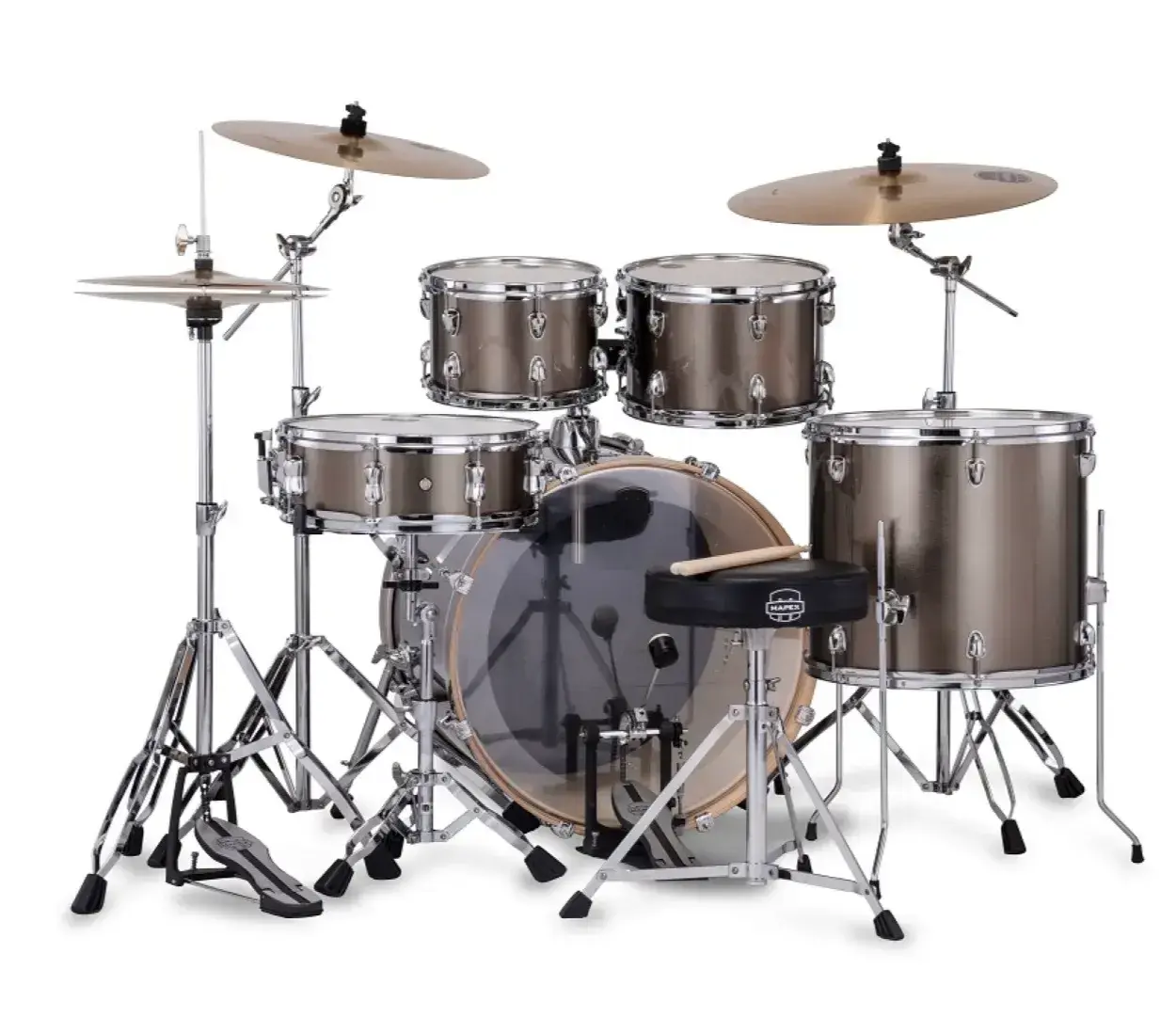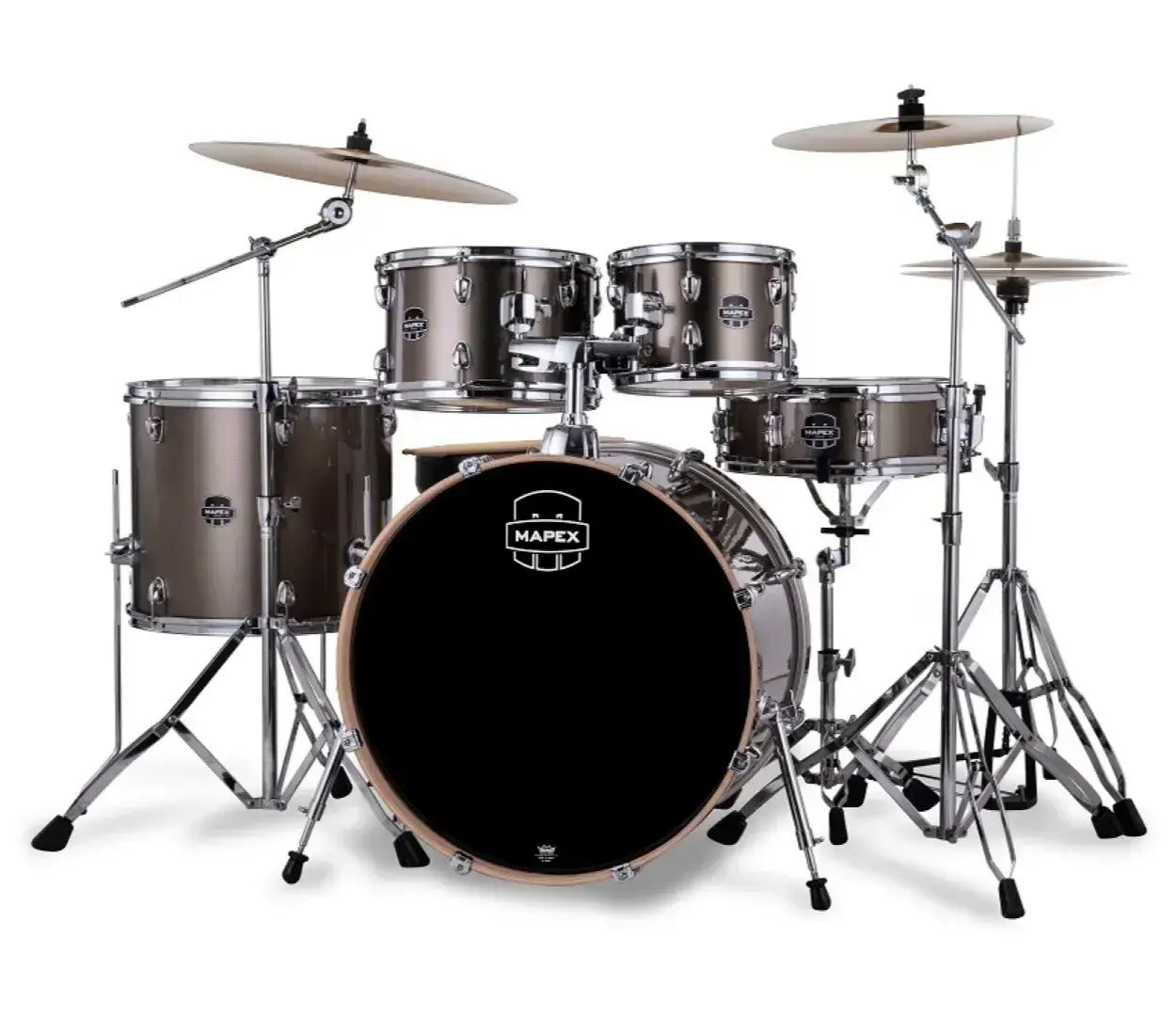 | Cymbals | 14" Hi-Hat, 16" Crash, 20" Ride (all Mapex hammered brass) |