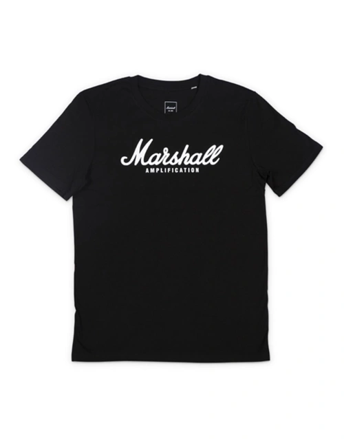 Marshall script logo T Shirt, Black with white print. Organic Cotton. Short sleeve. Size Medium