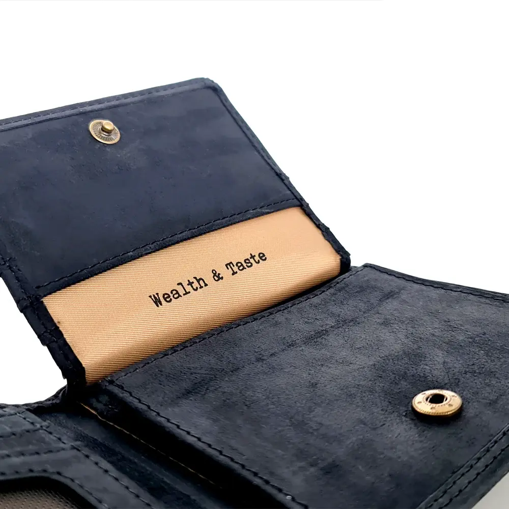 Cash or card? This wallet has got it all. Separate notes coins and cards to easily access essentials on the go. Bi-fold design made from vegetable oil dyed leather keeps your money and ID protected. RFID scanner-blocked inner bi-fold section, seven standard card pockets and an ID cage, and dual currency cash sections.