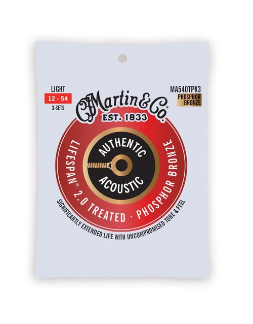 Martin Authentic Lifespan 2.0 Treated Acoustic Guitar Strings 92/8 Light 12-54 (3 Packs)