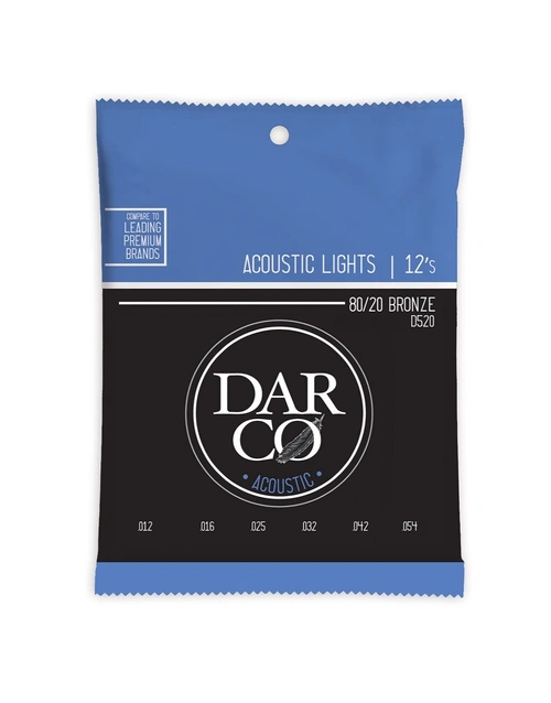 Introducing the Martin Darco 80/20 Light 12-54 Acoustic Guitar Strings. Designed for professionals and priced for working musicians, these strings offer exceptional quality, tone, and value. With a tin-plated steel core wire and high-quality wrap wire, Martin Darco strings have meticulous construction. Experience pre-gig peace of mind or a studio-ready fresh set with Darco acoustic strings and keep your guitar sounding new all the time.