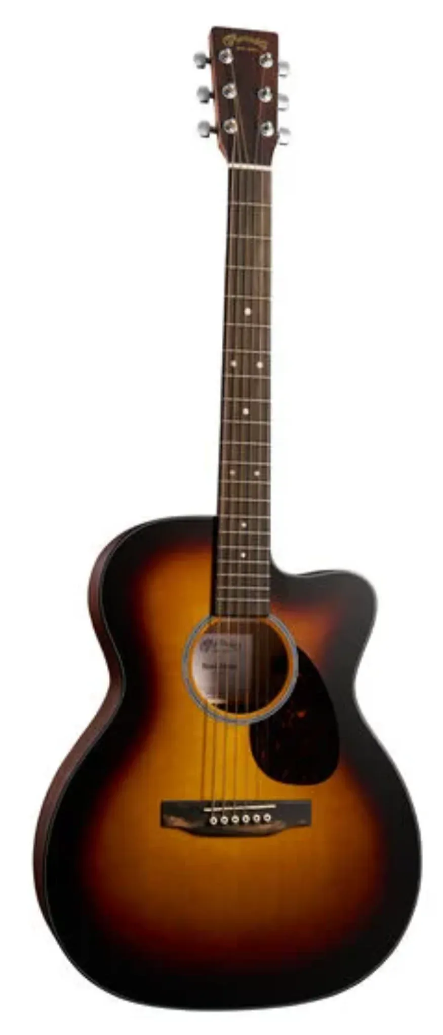 The Martin OMC-10E Modern Burst blends classic styling with a modern, performance-focused design. Its OM cutaway body, built from a solid spruce top and solid sapele back and sides, delivers a clear, balanced tone with strong note separation and added projection from the longer 25.4" (645 mm) scale length. It’s well suited to fingerstyle, light strumming, and players who need clarity across complex chord work.