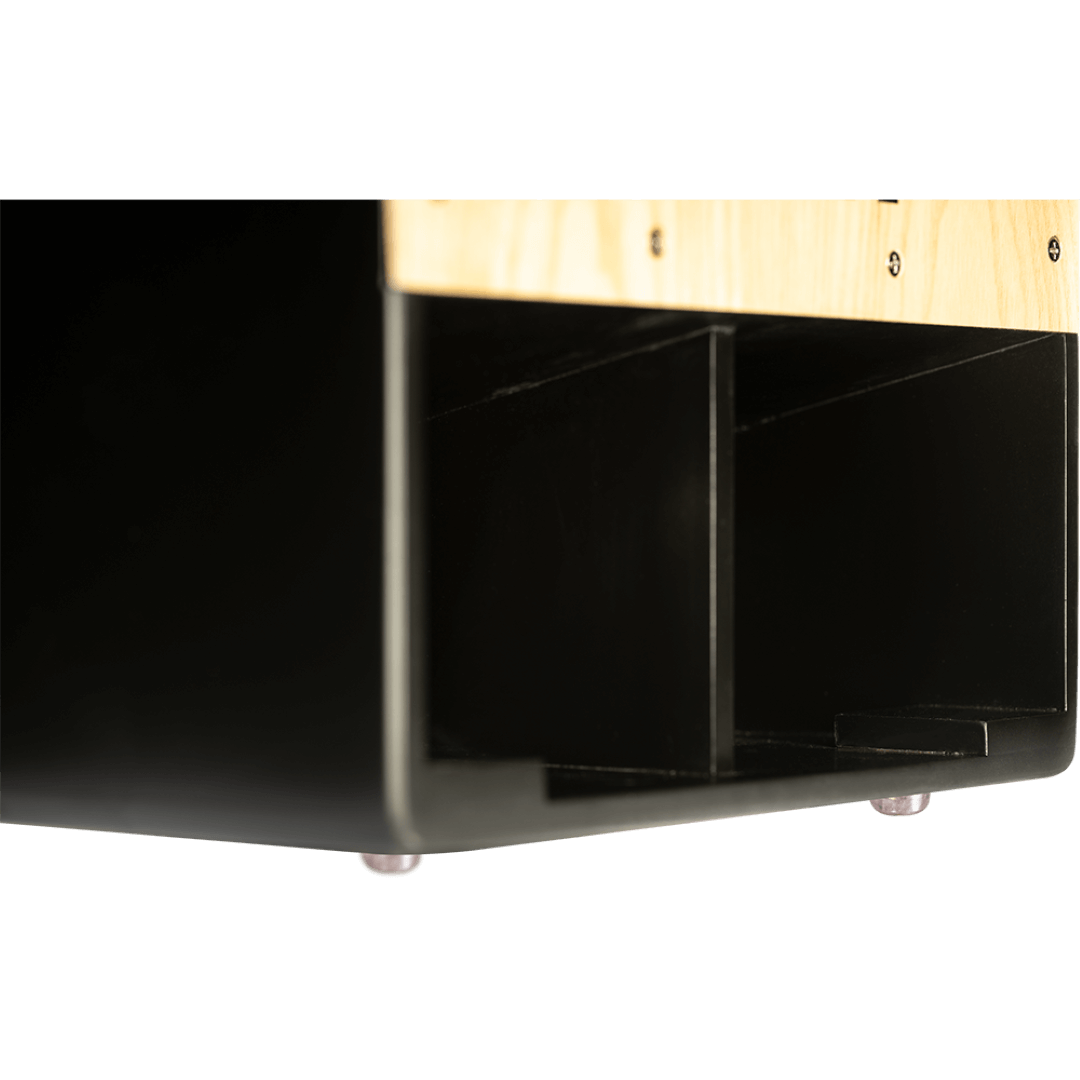This cajon is made to set a strong acoustic foundation for those gigs that don't call for a full kit. Explore ideas just like you would on a set of drums with thump-y kick drum rhythms and cutting snare. This is the type of bass you can feel. Its internal bass reflex system elongates low frequencies, creating an ultra-deep thud. Large, vertical forward-facing ports project sound from the internal channels. Ash wood is used for the playing surface, for its incredibly articulate response with warm mids and highs plus a robust low-end - perfect for this subwoofer cajon.